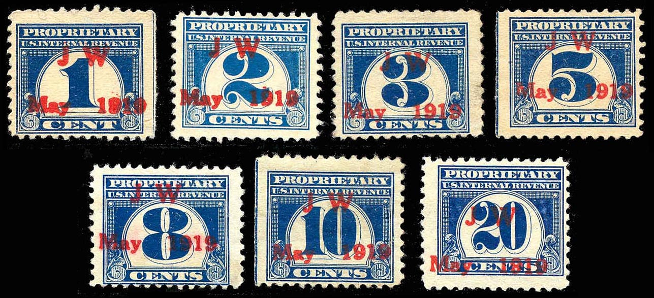 4029 O image(RB65//72) Group/7 different, Red PC, "J W", sm. faults, VG.