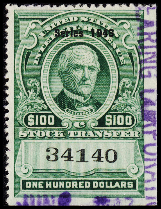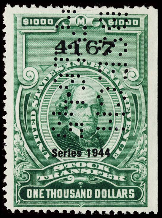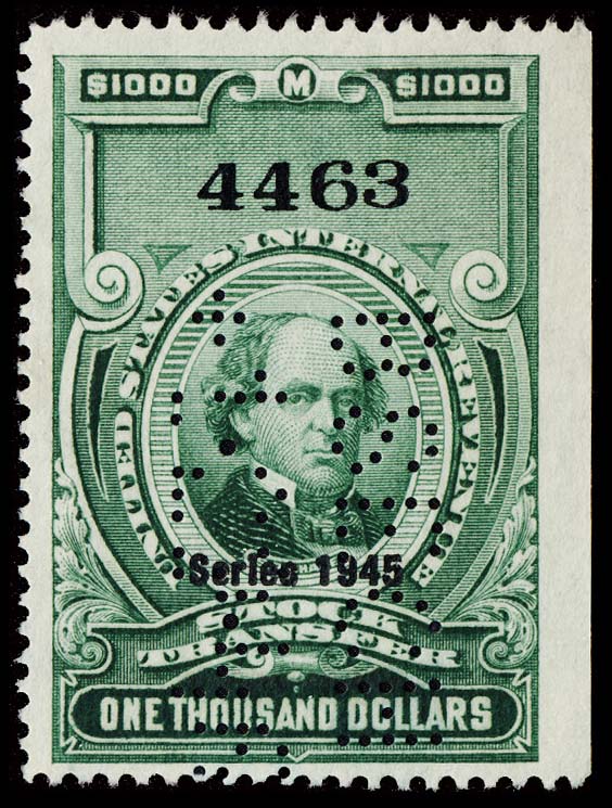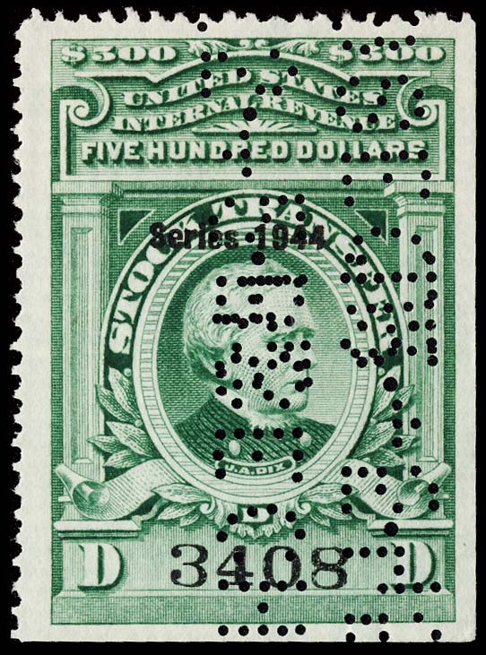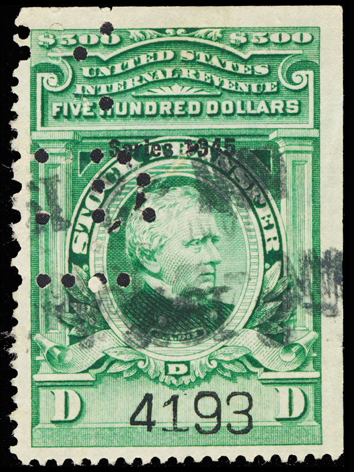 (RD185) HC, SH's, deep dark color, thin at B., Fine appearing example of this scarce stamp with only six cut examples recorded, there are NO uncut copies known.