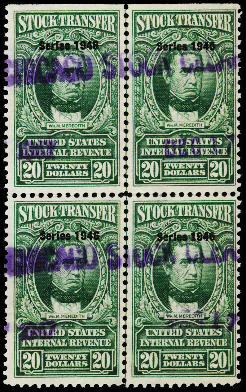 (RD225) BL/4, violet HC, SE @ T , VF, very scarce multiple with only a few blocks known.