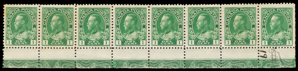 (104(var)) B. ST/8 with full lathework, NH(6)/LH, sharp color, two manuscript plate numbers at B.R., fresh and VF-XF, a most unusual multiple.