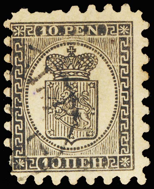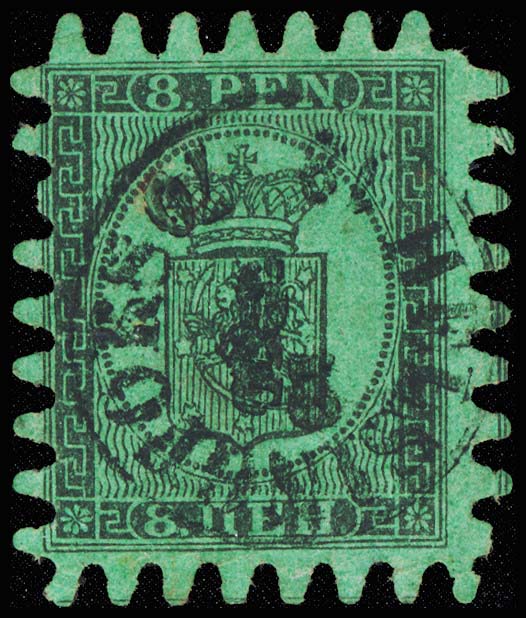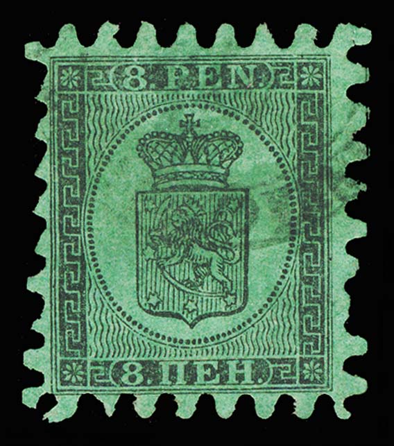 5880 O image(11a) Roulette II, very lt. HC, sharp color, couple of shorter teeth, fresh and Very Fine, a scarce stamp, Fac. #10c2 15,000SKE ($1,950).