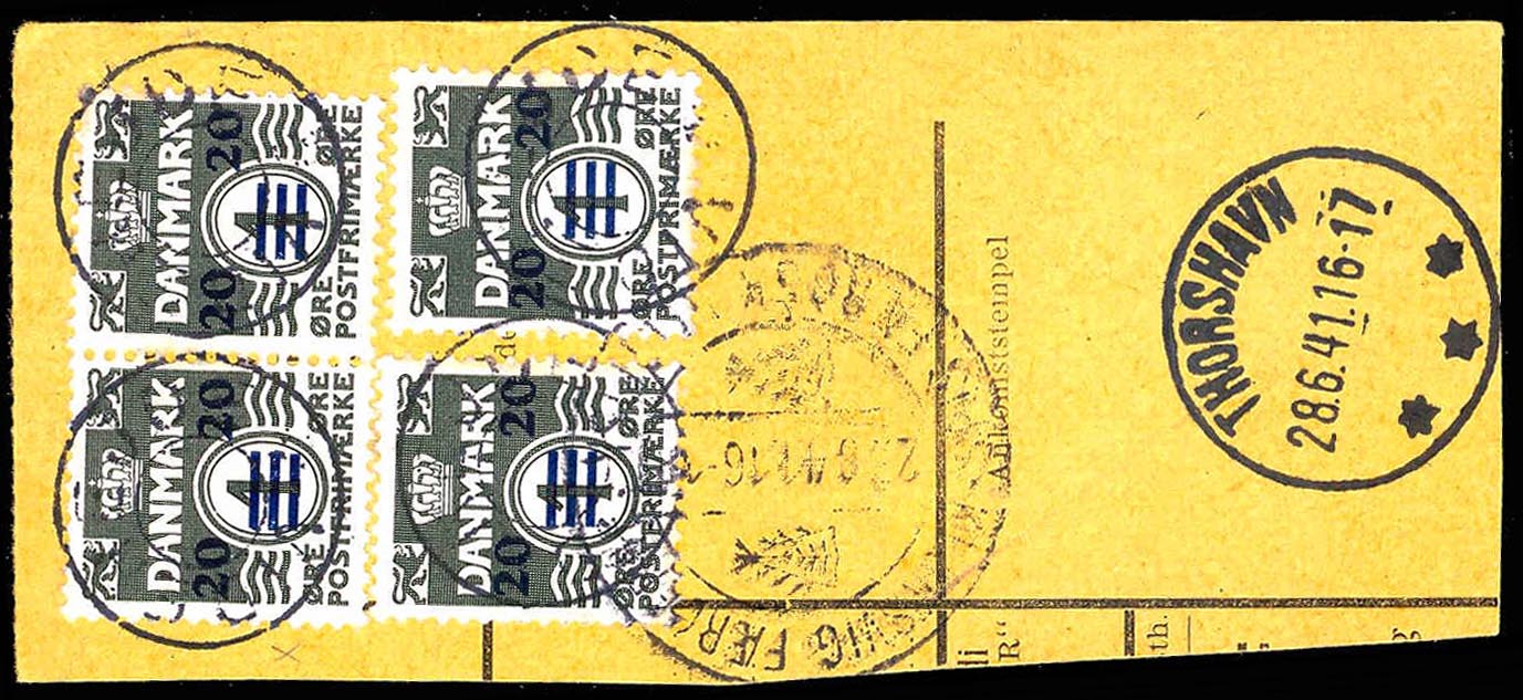 5871 O image(2(4)) Four singles on piece, HC, VF.