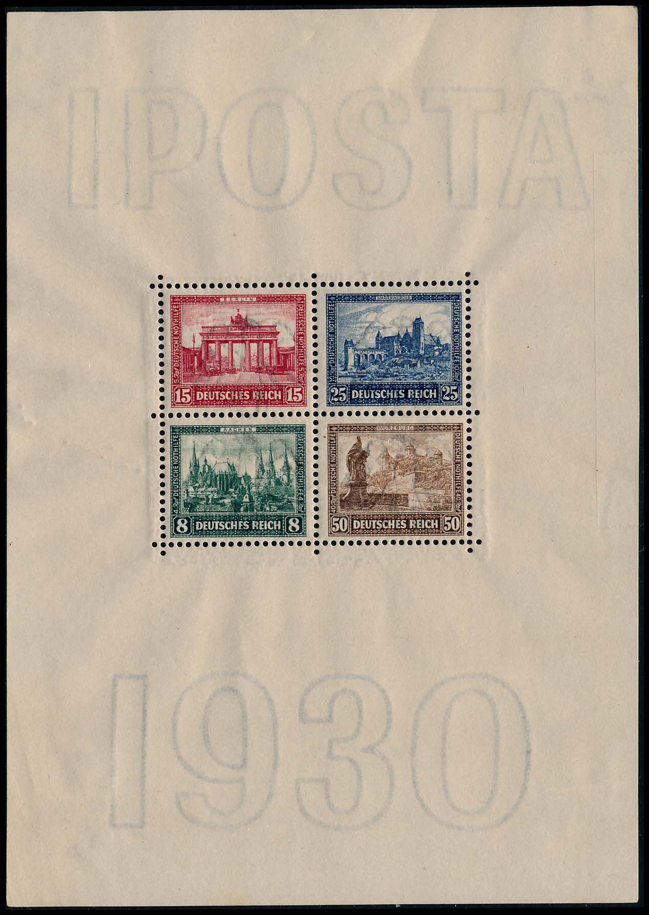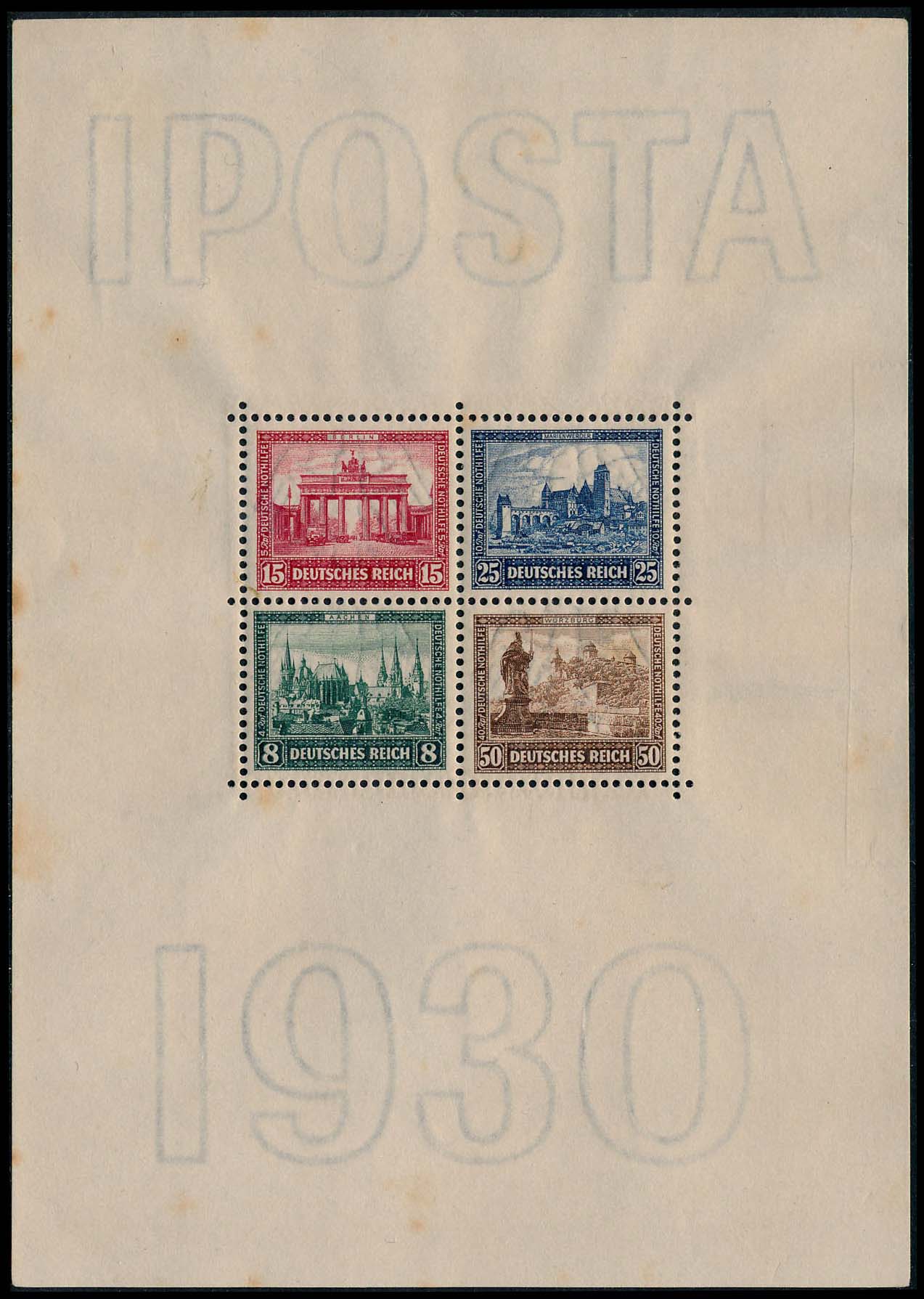 5992 og image(B33) IPOSTA S/S of Four, OG, NH, there is just a spot of light toning on the gum of one stamp, quite fresh and Very Fine+ sheet.
