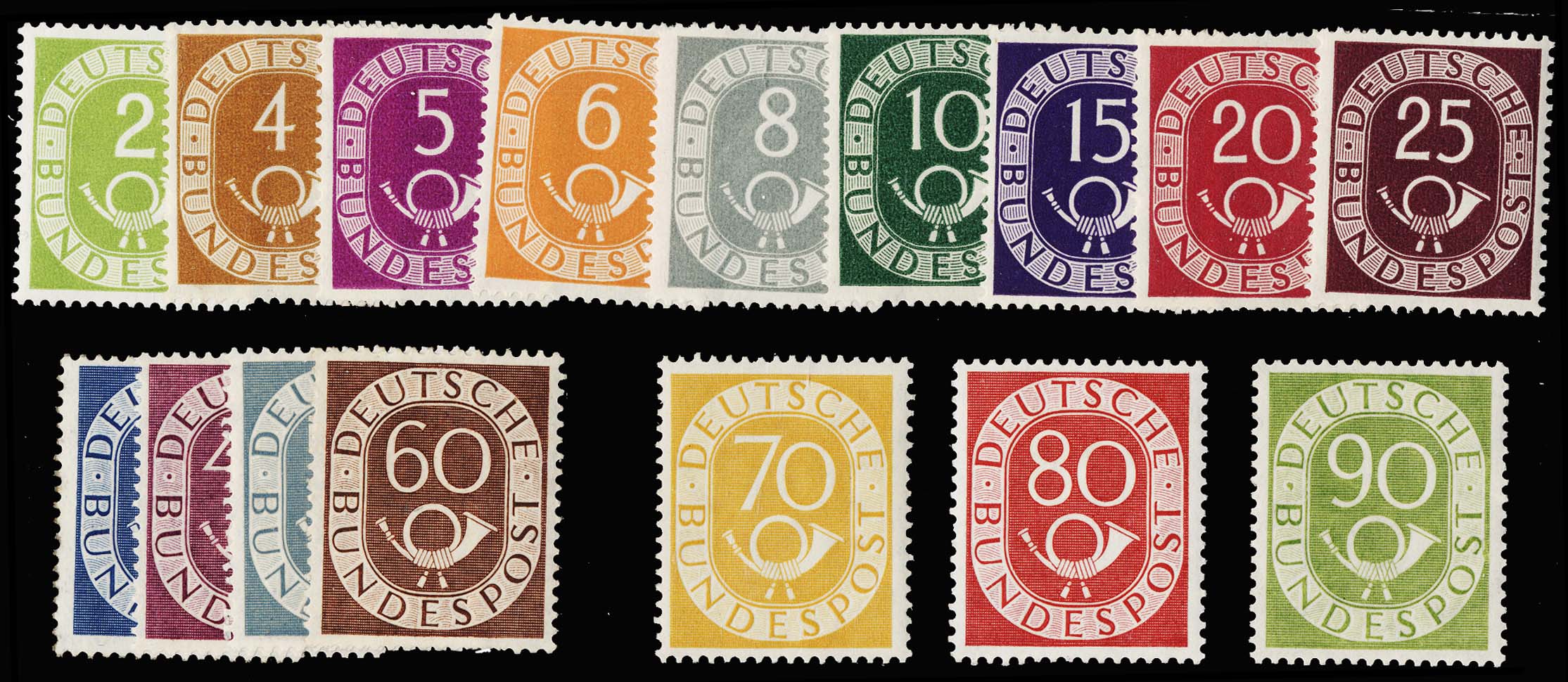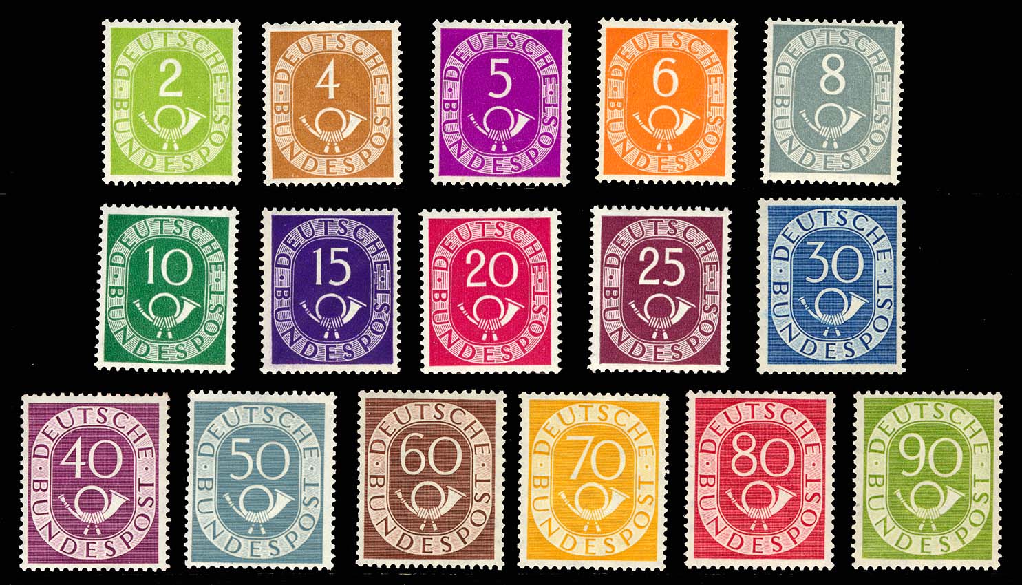 5983 nh image(670-85) Posthorns SET/16, NH, sharp colors, fresh and VF, a very nice looking group for this always popular set.