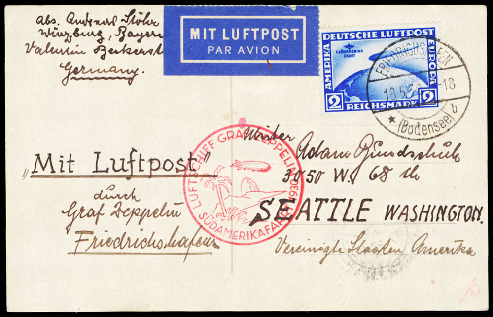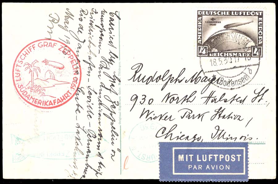 6033 O image(C39) Tied on picture postcard with CDS, Zeppelin Flight, May 31 1930, VF.