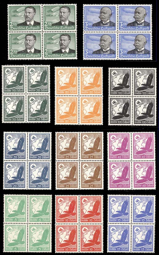 6027 nh image(C46-56) Set/11 in blks/4, NH, VF-XF, quite fresh and certainly quite well centered, a very scarce set of great looking blocks of four.