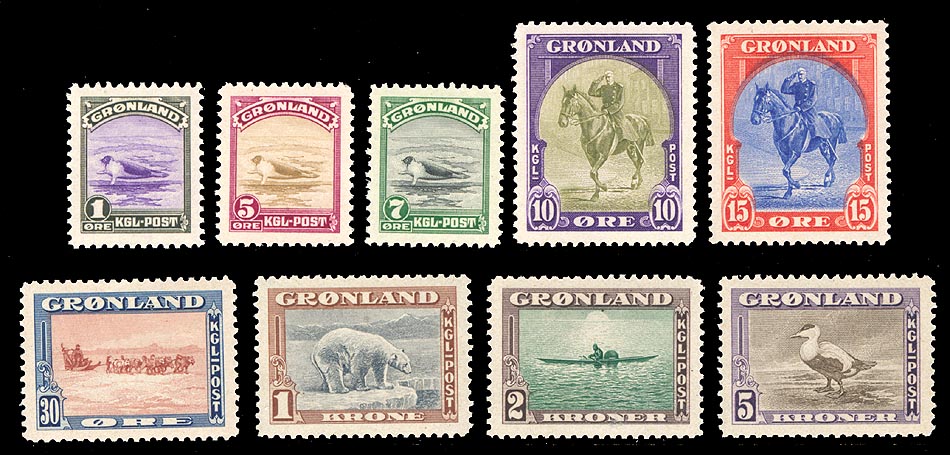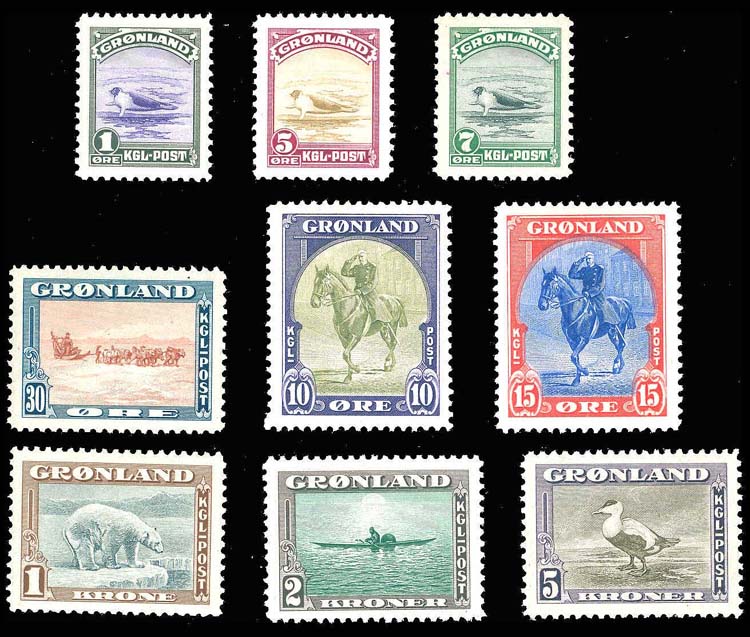 6198 og image(19-27) Set of Nine, OG, NH, three stamps have some minor tone spots on the gum, quite fresh and overall Very Fine+, signed "Stolow", a great looking set.