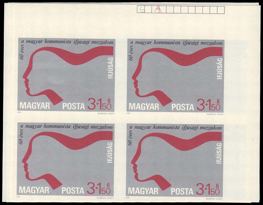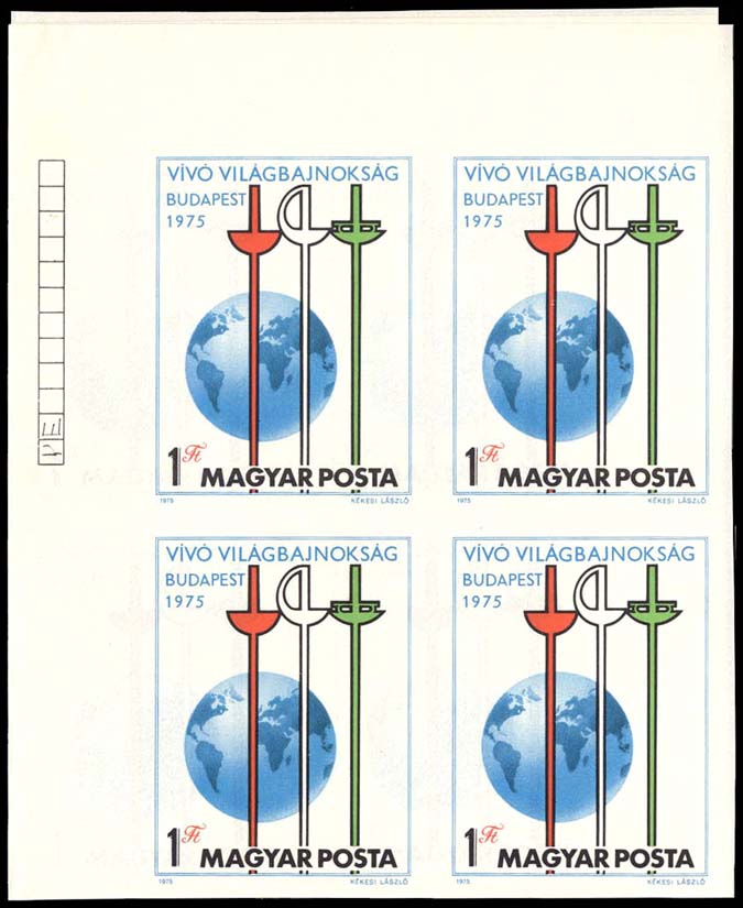 (2368(var)) Matched set of corner BLK's/4, NH, imperfs., XF.