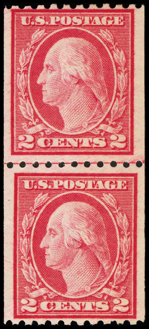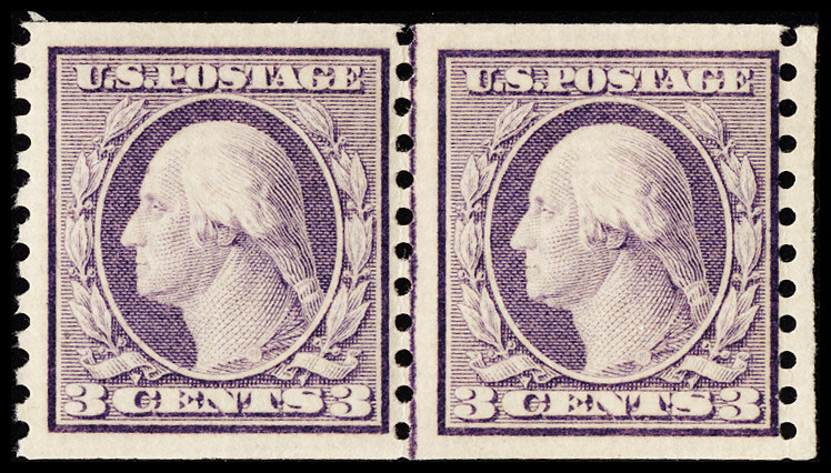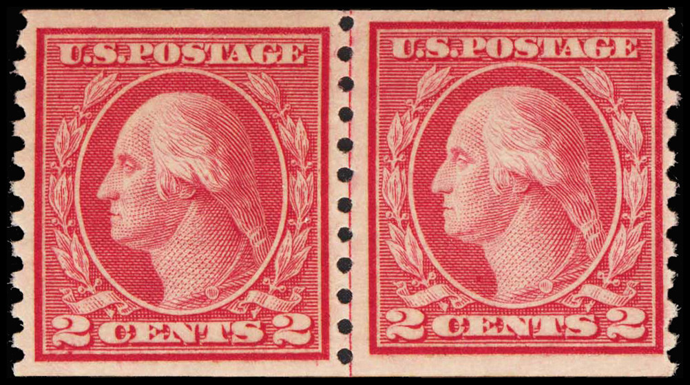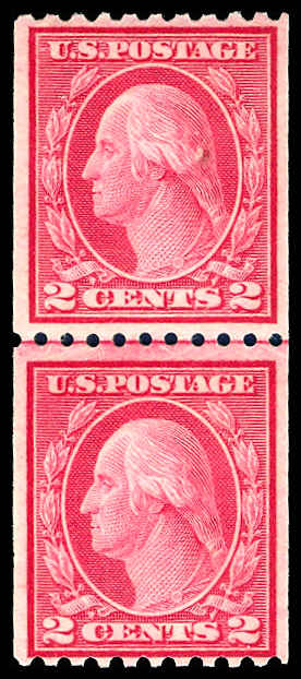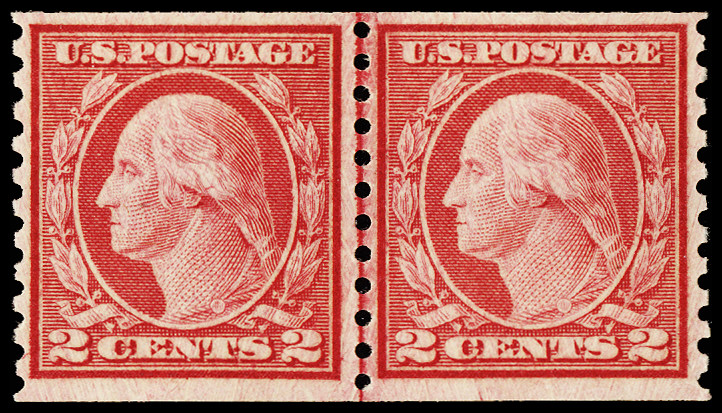 (487) Line Pair, OG, NH, brilliant color, tiny natural inclusion at T., fresh and Very Fine.