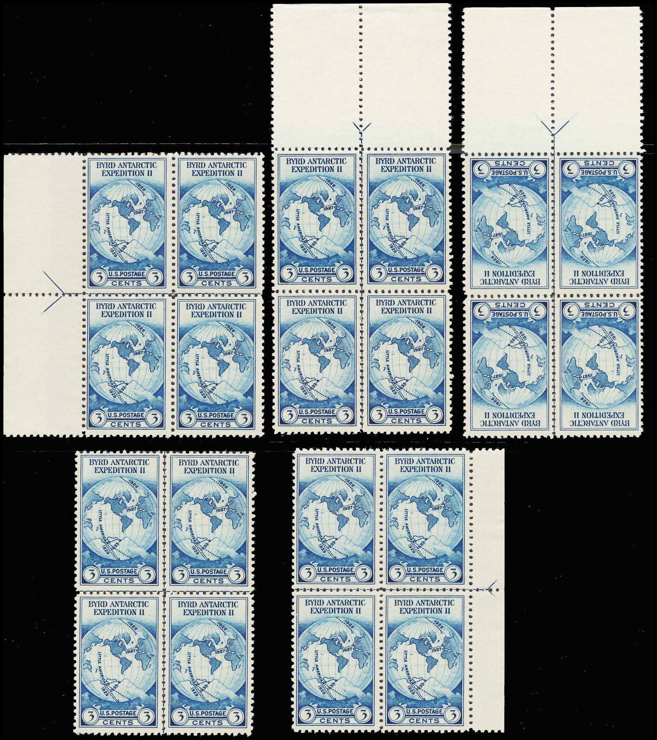 1303 og image(753) Matched Set/5 Blks/4, four arrow blocks and a C.L. block, No Gum as Issued, VF.