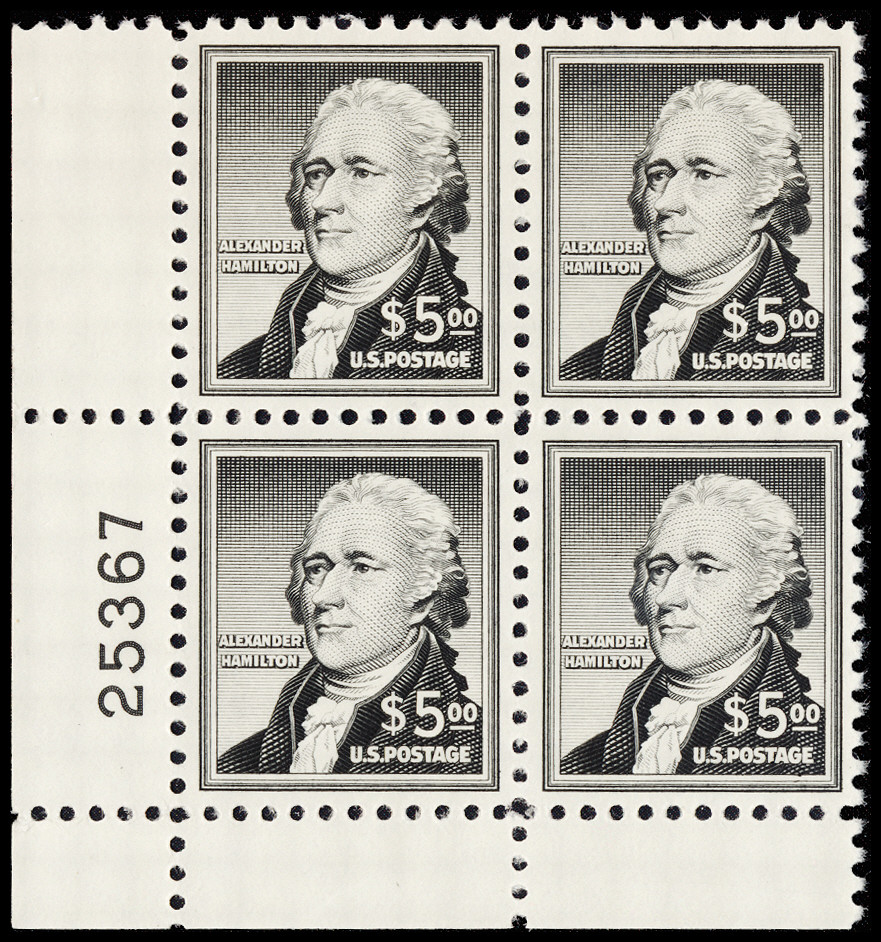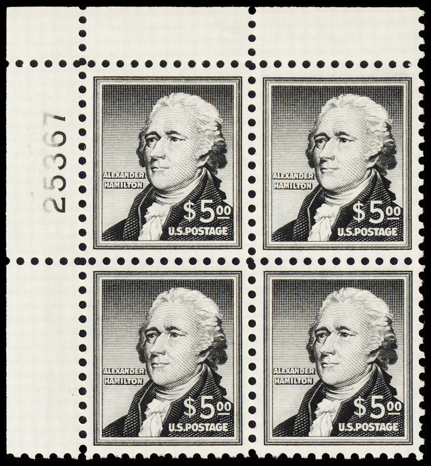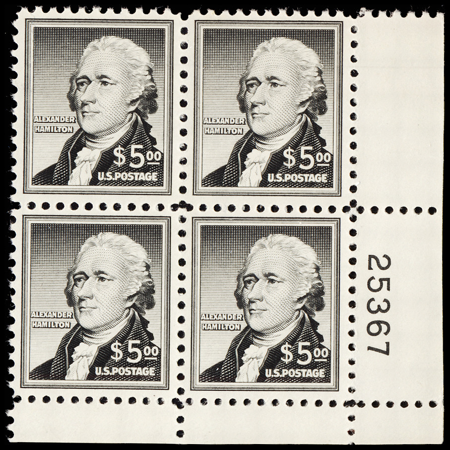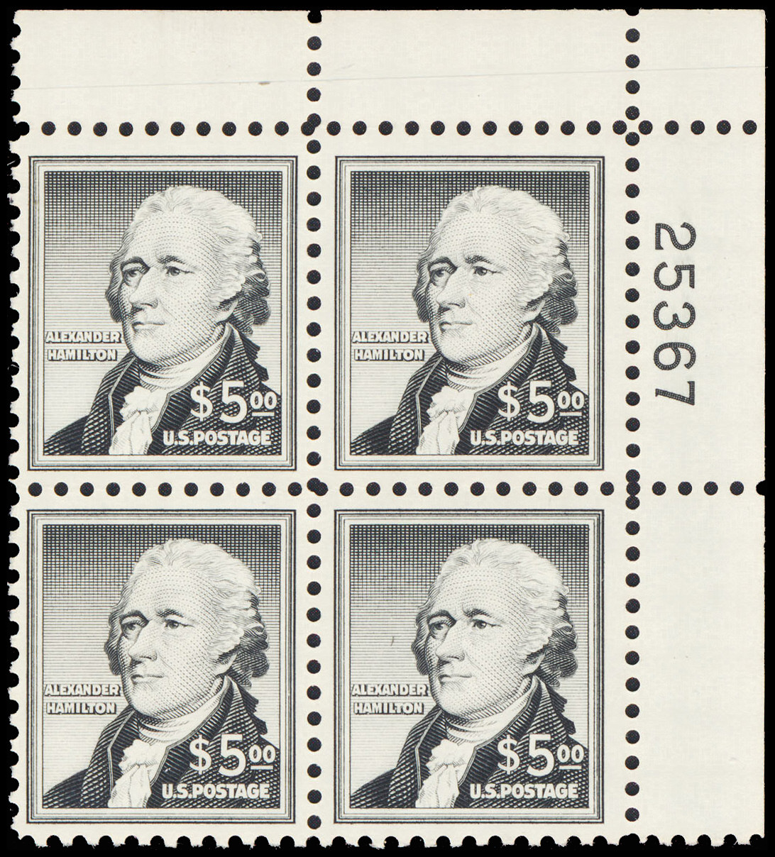 (1053) PB/4, NH, sharp color, fresh and XF, choice plate block.