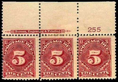 (J41) T. pl. #255 ST/3, NH/LH, sharp color, thin in the middle stamp, otherwise VG.