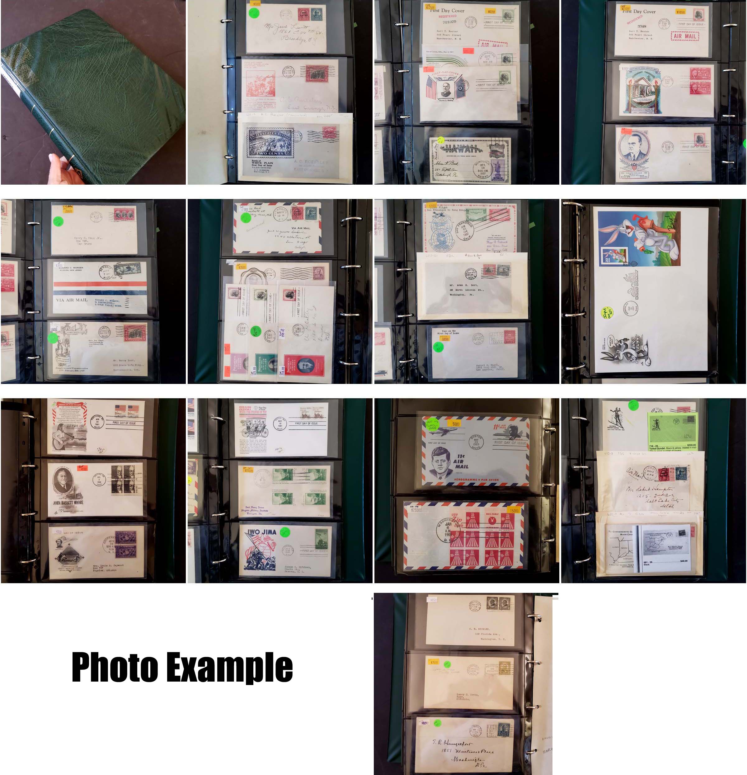 11 imageBETTER FDC GROUP, includes about 130 various FDC's, displayed on black stock pages in a album, most are pre-1940 but there are some better later covers which include some early Colorano Silks, there are also a couple dozen early Airmails, there are a few sets with multiple cities, values up to about $250 with over 25 items having values of $100 or more, most of these covers catalog at $40 or more, several high denomination FDC's, the value listed is a combination catalog value and retail where there is no catalog value available, the overall condition is very clean but expect some faults in the early covers, strong in the Parks and Prexie area, a huge amount of value here and well worth careful consideration.