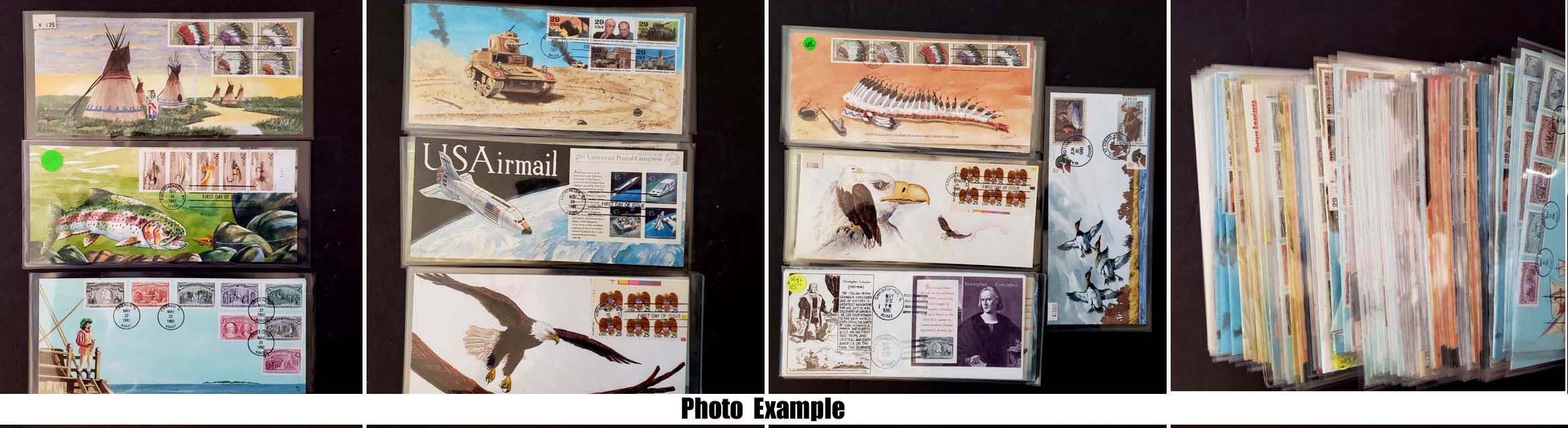 1 imageEXTENSIVE HANDPAINTED FEDERAL DUCK STAMP FIRST DAY COVER COLLECTION, this incredible collection of 423 DIFFERENT handpainted FDC's features dozens of different designers and a range of years from 1983 to 1999, mostly loose in a box but virtually all are in plastic or poly sleeves, the overall condition is very, very nice with maybe only a few scattered faults, the collection by years include of all different artists: 1983(5 Different), 1984(24), 1985(46), 1986(29), 1987(38), 1988(39), 1989(86), 1990(66), 1991(32), 1992(6), 1993(7), 1994(10), 1995(9), 1996(2), 1997(2), 1998(3), 1999(3); please note that some artists had different designs for the same years, the general retail on Duck FDC's is in the $20-30 range but for handpainted covers the retail value jumps up to the $50-75 range depending on the artist, many scarcer covers retail in the $100-300 range, this collection is the most extensive handpainted Federal Duck FDC collection we have ever seen, a truly amazing group of covers not to mention the stunning multi-colored designs and unique artwork attributed to the dozens of artists who worked on this are over the years, we have scanned a number of covers but seeing this massive collection in person is an incredible treat, our estimate of the retail value of this collection is easily in the $30,000-40,000 range and just the time and expensive of seeking out these covers over many years would cost thousands of dollars in time and expense, it is our pleasure to offer this collection intact as received.