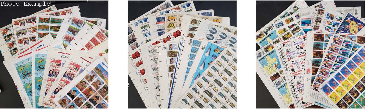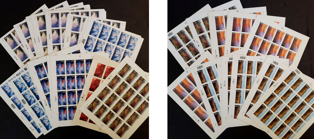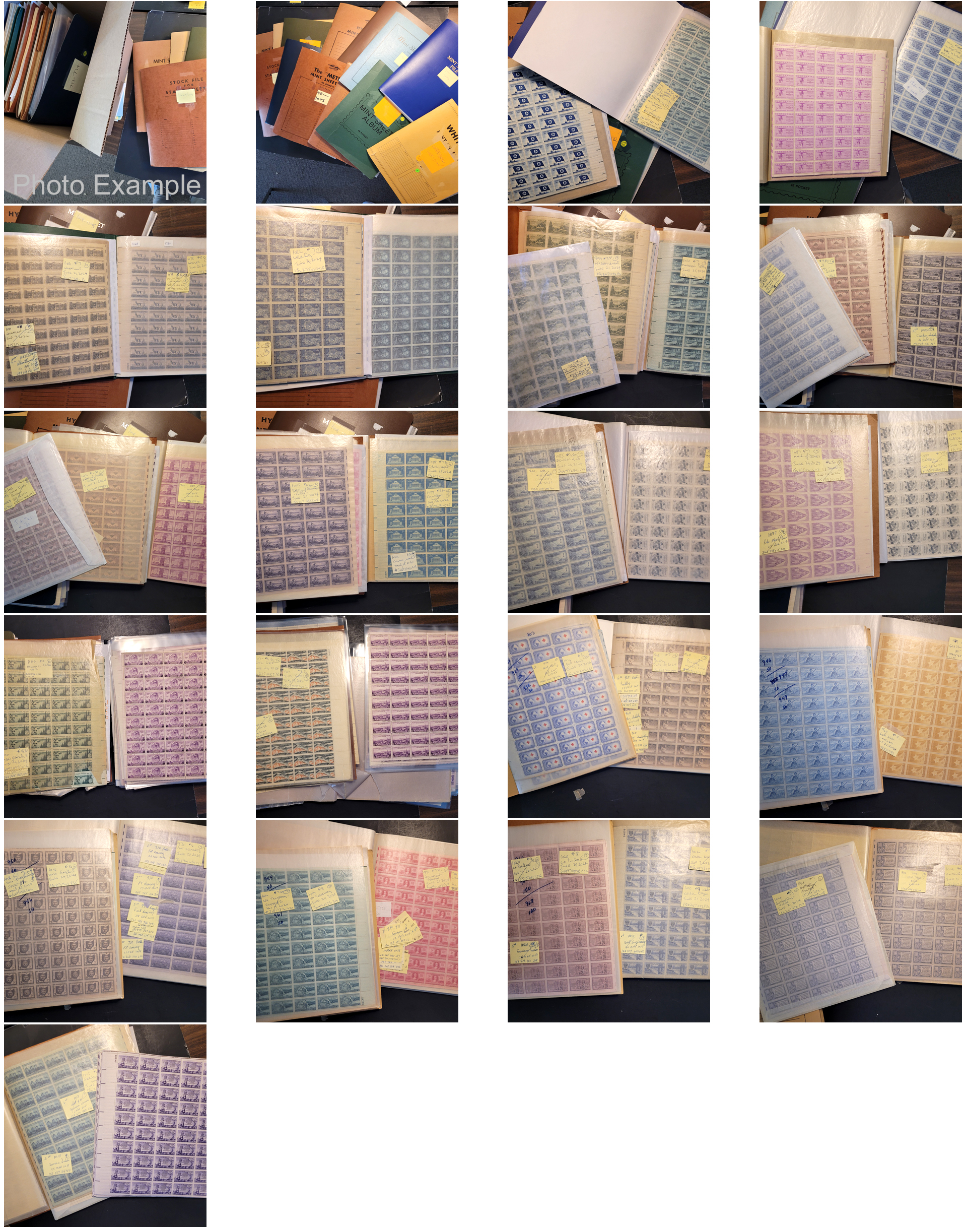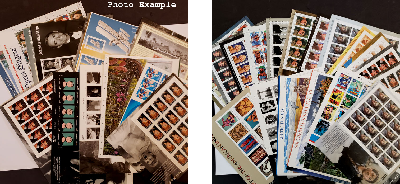 218 imageU.S. MINT PRESS SHEETS GROUP, includes 17 mostly different mint large press sheets, contained flay in a large cardboard container, maybe some slight faults due to handling but generally pretty clean, Brookman catalog value should be over $1,000 for this group, Total Face = $484.00 (Image)