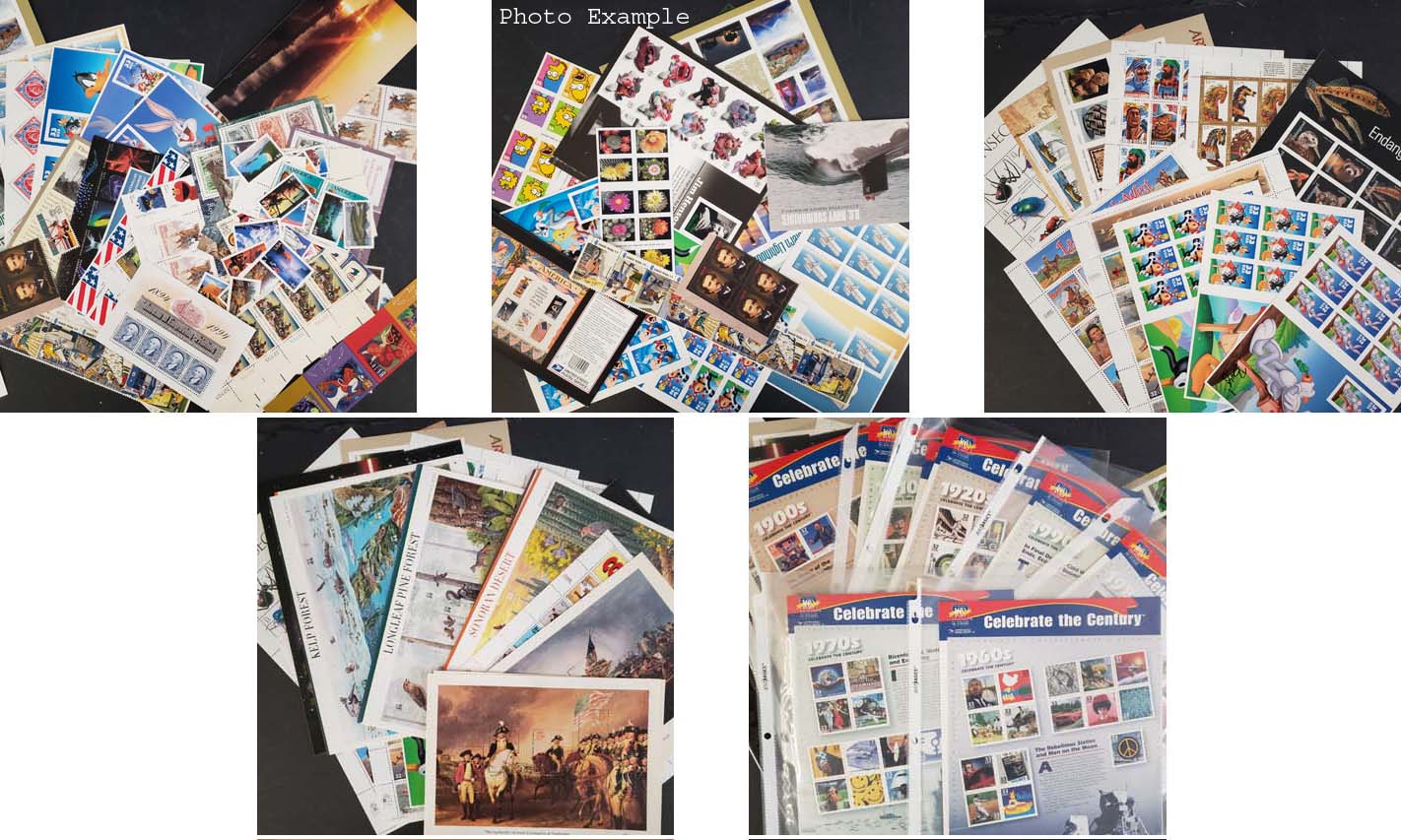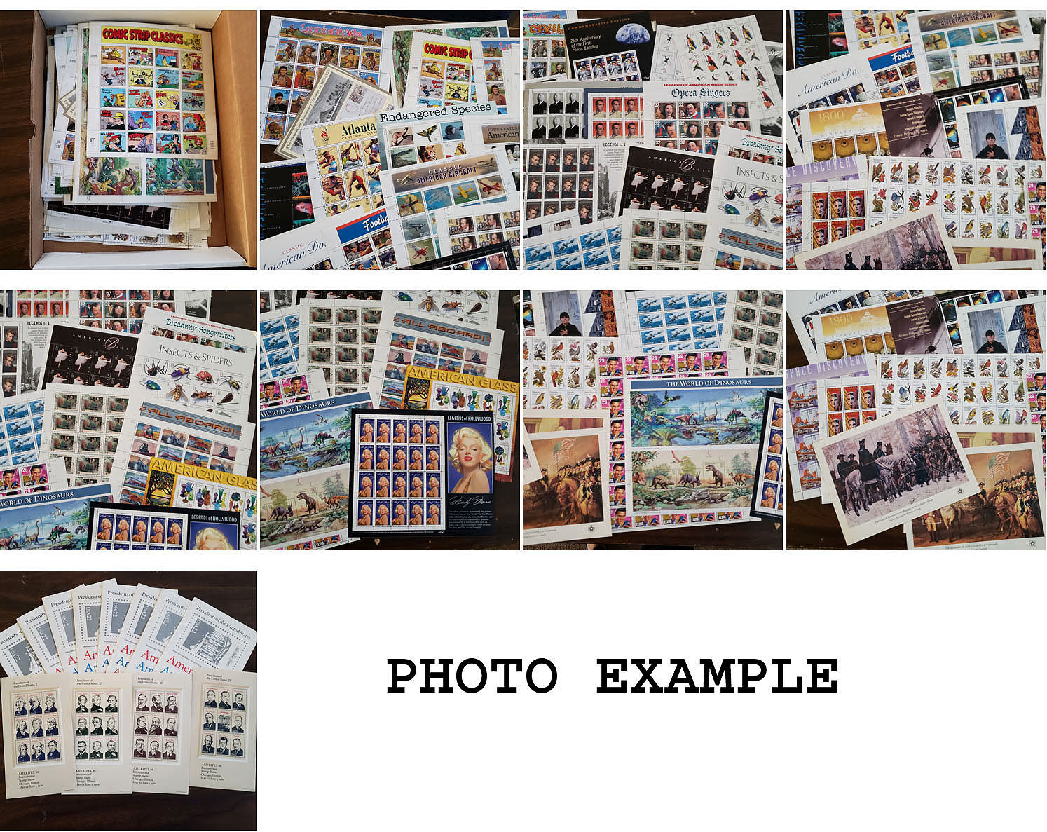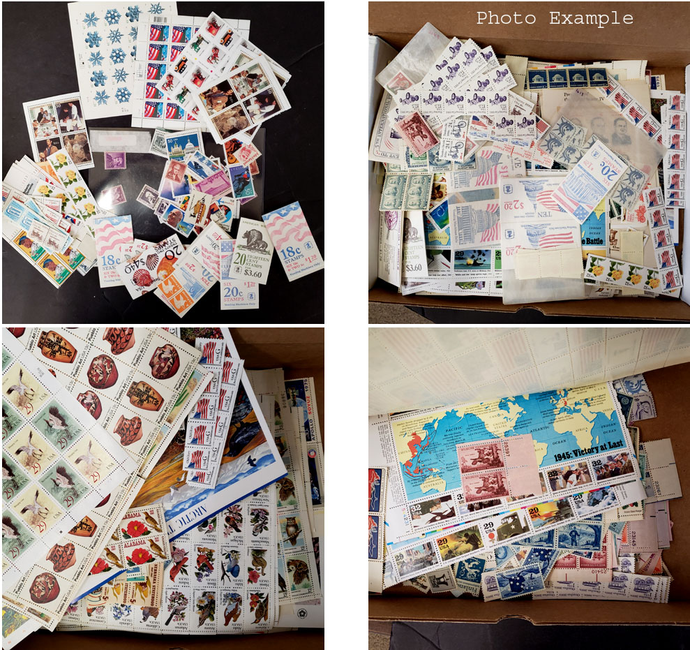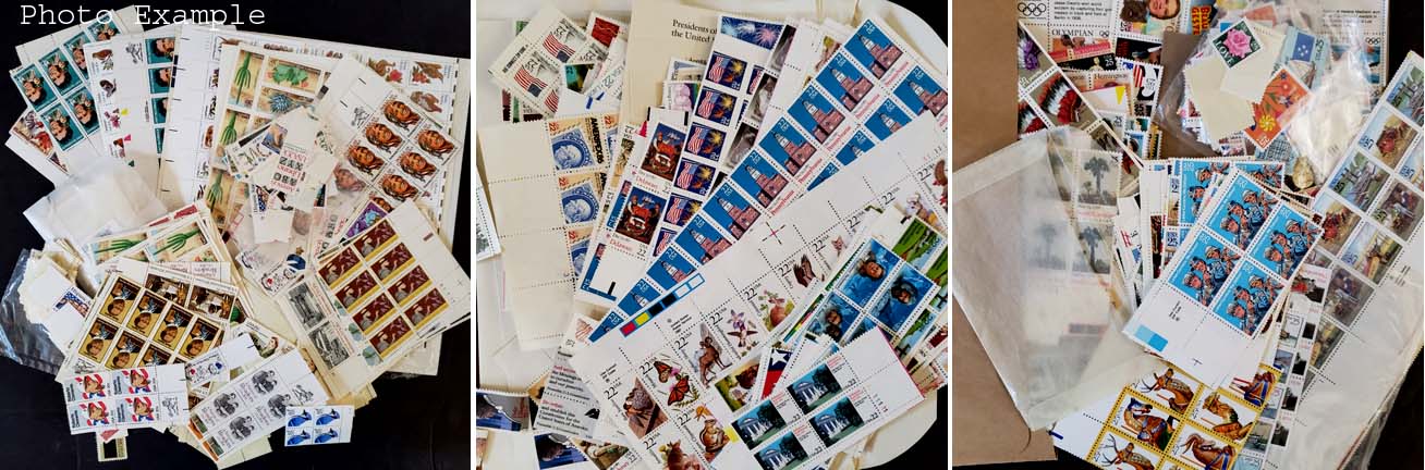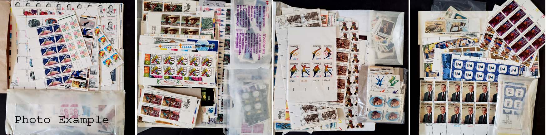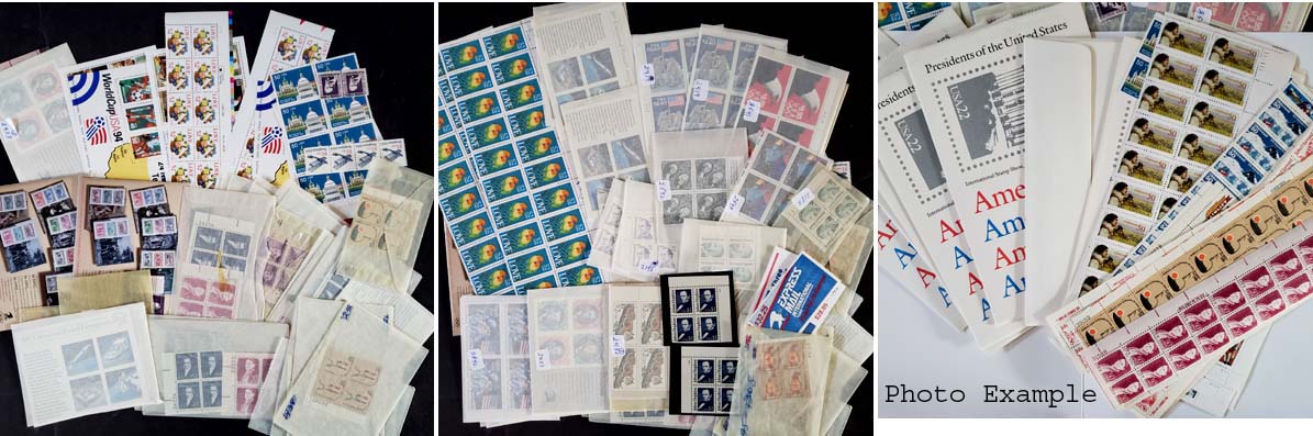 215 imageU.S. FACE VALUE MIXTURE VARIOUS DENOMINATIONS, includes several hundred various mint singles, blocks, plate blocks and some mint sheets, good variety but there is duplication here, some slight mixed condition due to handling, Total Face = about $560.00 (Image)