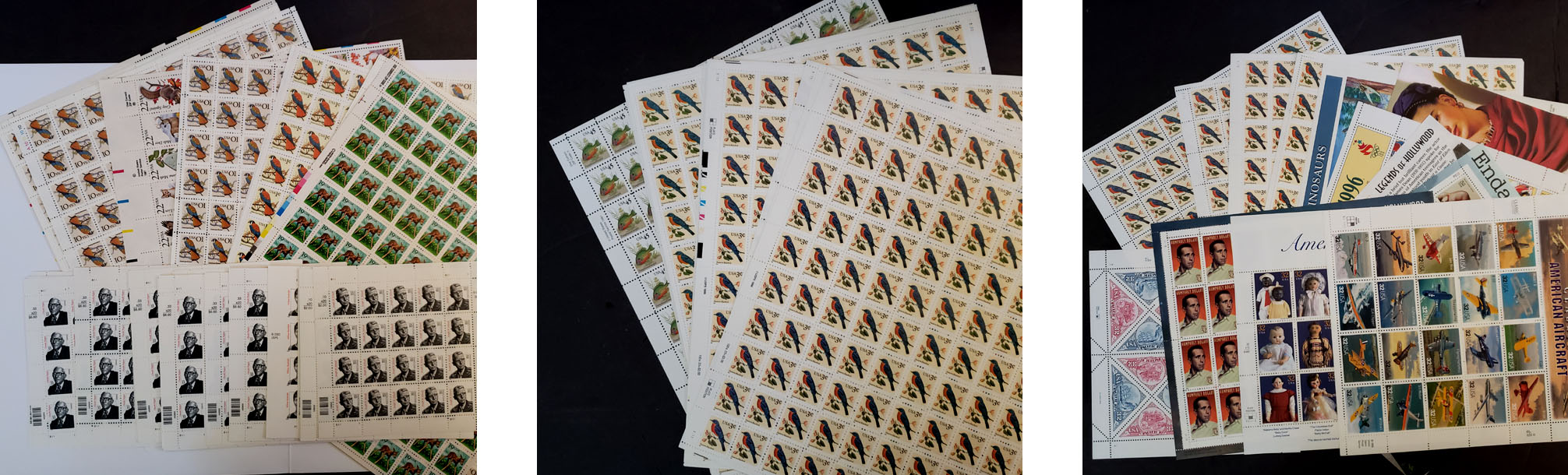 211 imageU.S. MINT SHEETLETS ACCUMULATION, includes 114 various mint sheetlets, stacked loose in a folder, both gummed and self-adhesive but mostly different and mostly self-adhesives, runs to the 44c denominations, maybe a scattered fault due to handling, Total Face = $720.00 (Image)