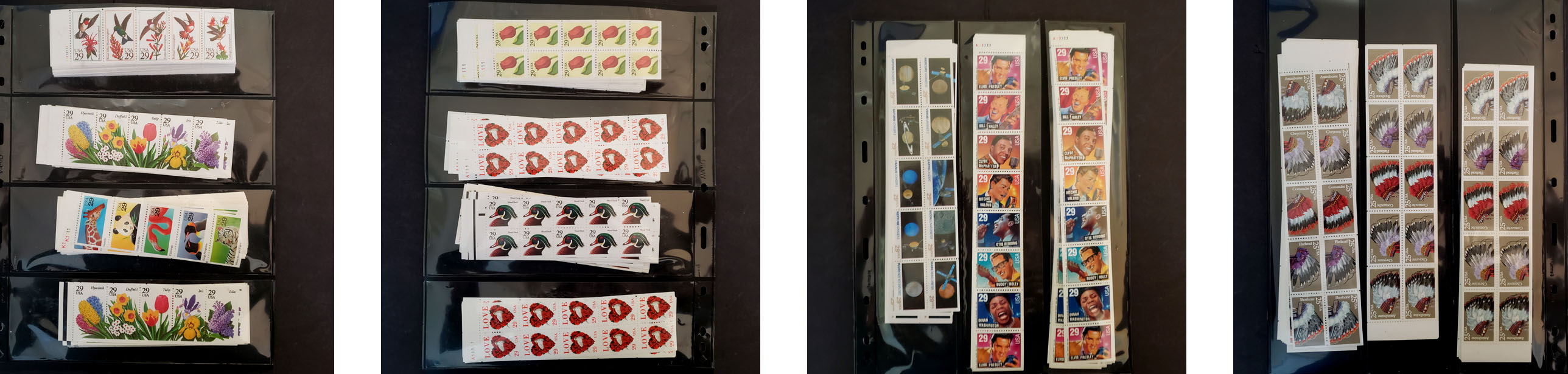 213 imageU.S. GUMMED BOOKLET PANES, includes 305 various mint booklet panes, contained on black stock pages, all are gummed, includes 25c to 29c, there is some heavy duplication, maybe a minor fault, Total Face = $660.00 (Image)