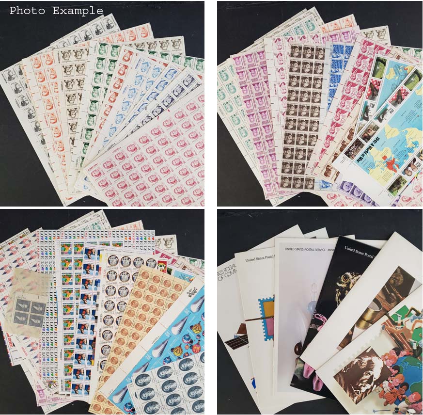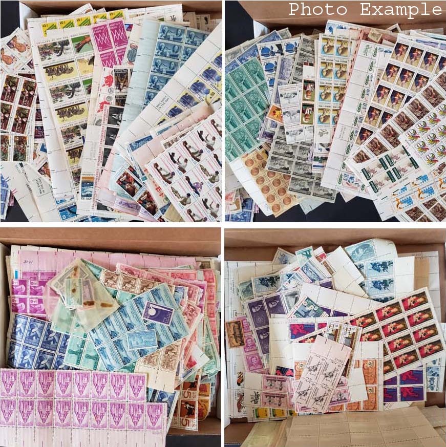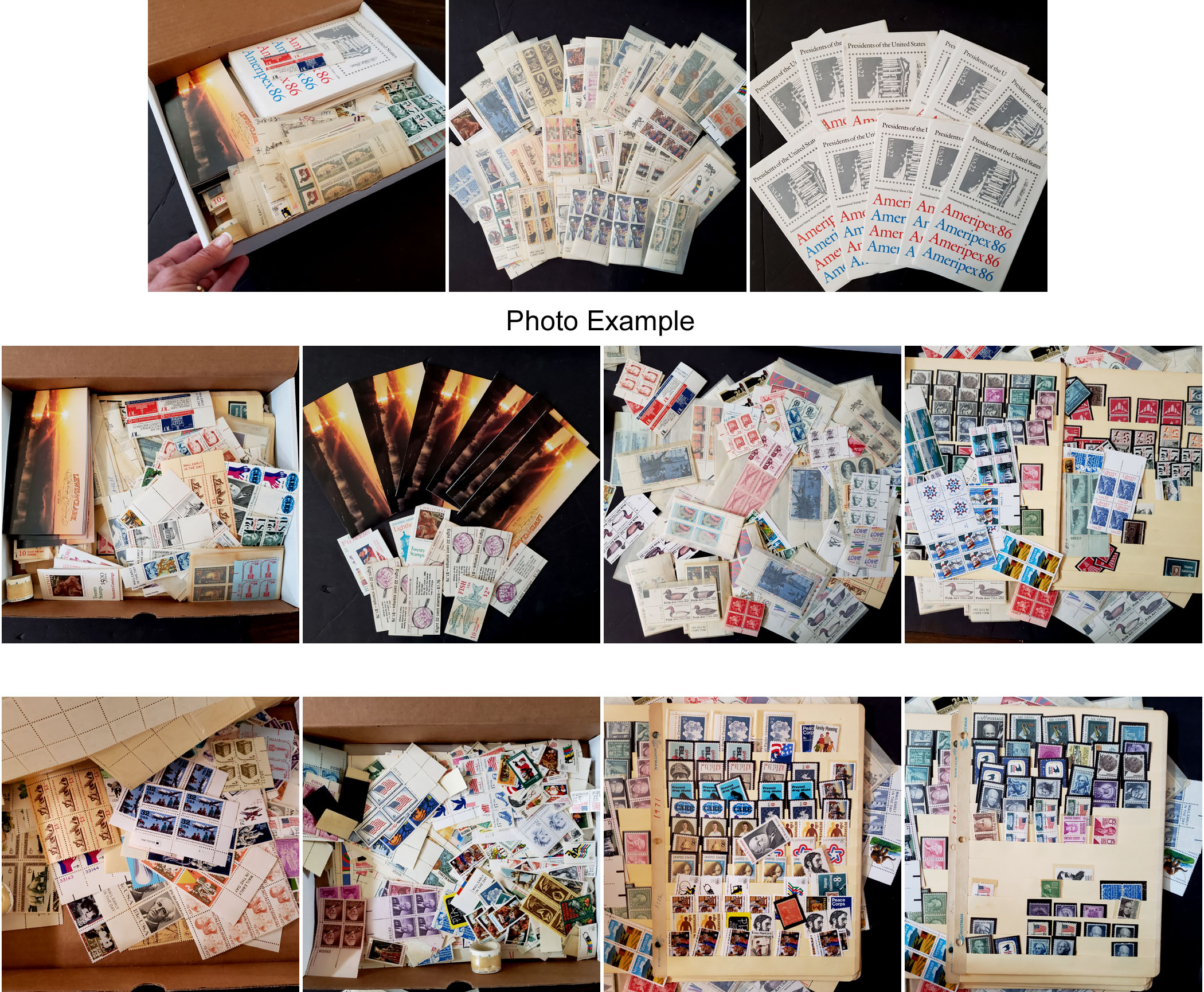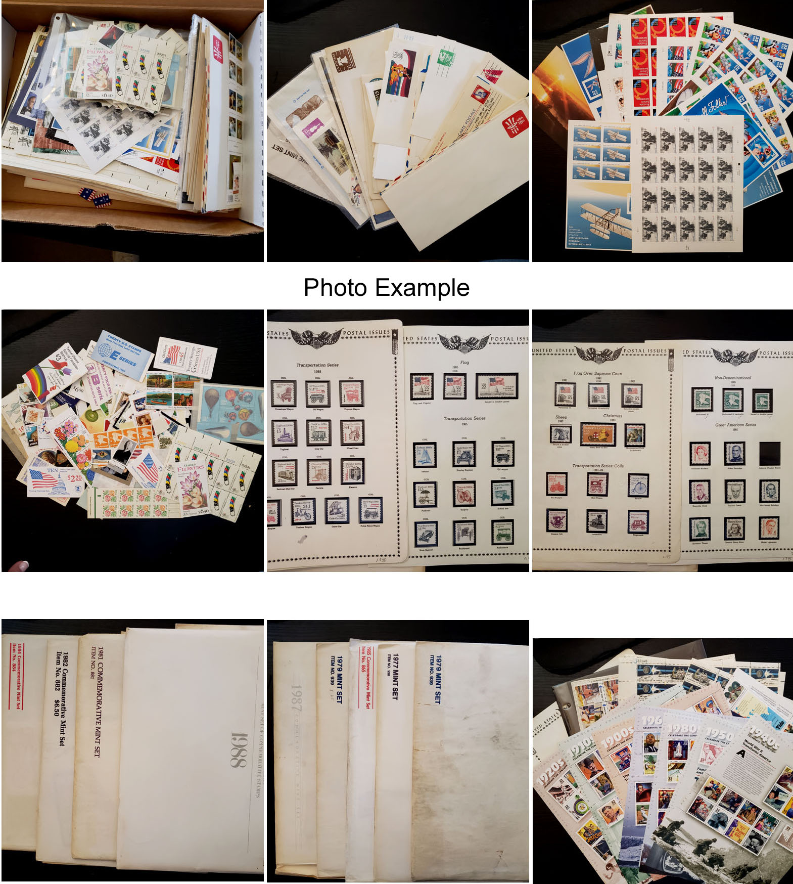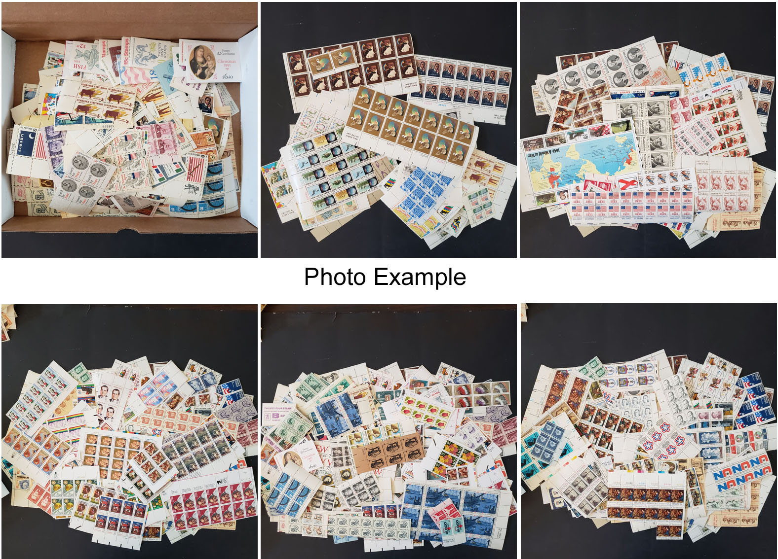 231 imageU.S. FACE MIXTURE, includes several hundred various singles, blocks, plate blocks, mint sheets and about a dozen year sets, contained in a large white box, there is also a group of unused stationary items, good variety but there is some duplication, some mixed condition, Total Face = $420.00 (Image)