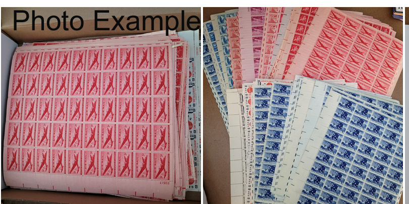 222 imageAIRMAIL MINT SHEETS GROUP, includes over 100 various mint sheets of Airmail stamps, loose in a flat white box, there is duplication, runs from 4c to 25c denominations, some mixed condition and seps due to handling but generally pretty clean, there are several "better than face" items here, take a look, Total Face = $475.00 (Image)