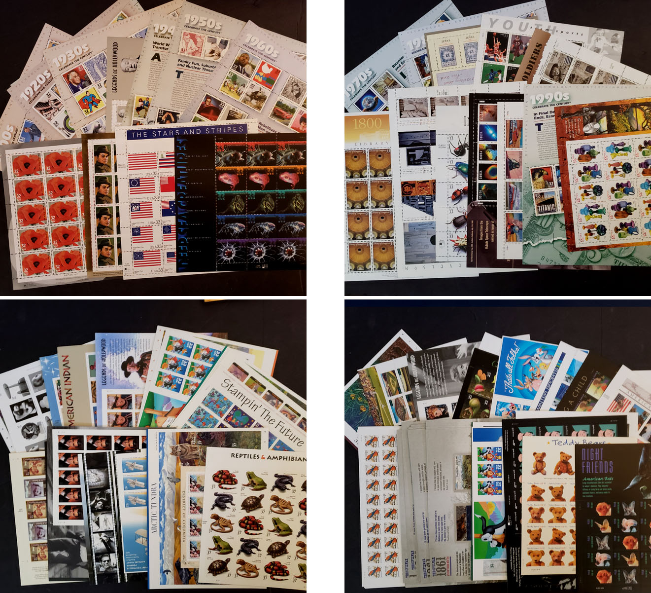 229 imageU.S. MINT SELF-ADHESIVE SHEETLETS, includes 63 various mint sheetlets, contained loose in a folder, all are self-adhesive, there is some duplication, maybe a minor fault, Total Face = $414.00 (Image)