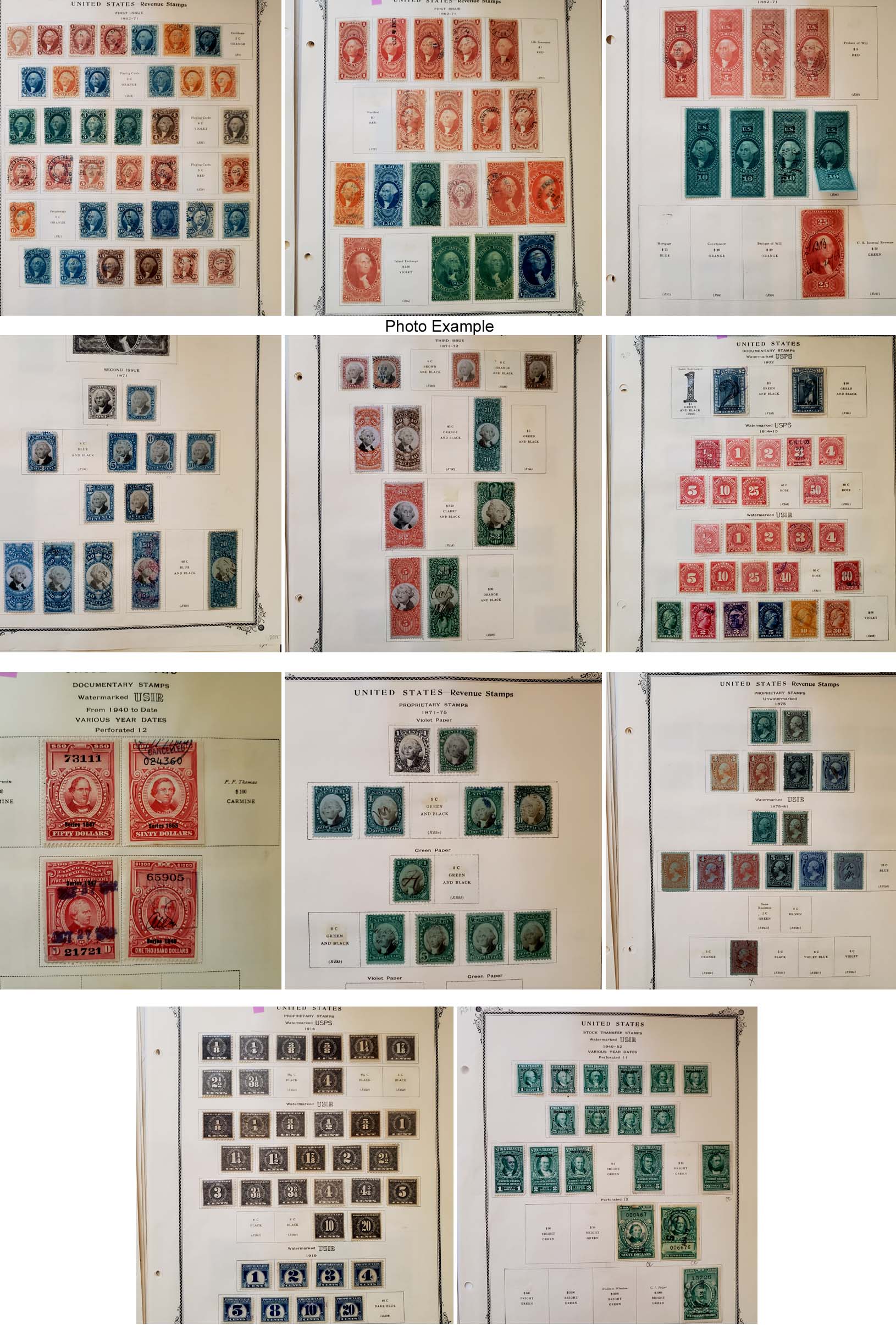 266 imageREVENUE COLLECTION, includes several hundred mostly different, mounted on Scott album pages, most of the value here is in the First Three Issues but there are some Docs and Props included, the overall condition is mixed and there are some faults to be expected but also many sound Very Fine stamps too, values up to about $150 with some higher, some of the better stamps are: R1a, 19a, 41a, 51a, 64a, 68a, 74a, 75a, 76a, 81a, 85a, 11b, 56b, 17c, 73c, 90c, 97c, 98c, 100c, 101c, 113, 141, 147; a very nice collection with many nice stamps, also plenty of retail value for the player that wants to break collections down, take a good look.