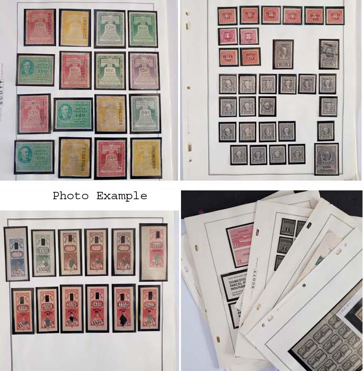 278 imageU.S. REVENUE AND MISC. B.O.B. COLLECTION, includes a few hundred various Revenue and Revenue related items including Motor Vehicle, Silver Tax, M & M's, Post Office Seals, Savings stamps, State Revenues and Lock Seals, there is some duplication, usual overall mixed condition, the catalog value is just for the Scott listed items, there is maybe a couple of hundred dollars of market value in the non-Scott material, take a look.
