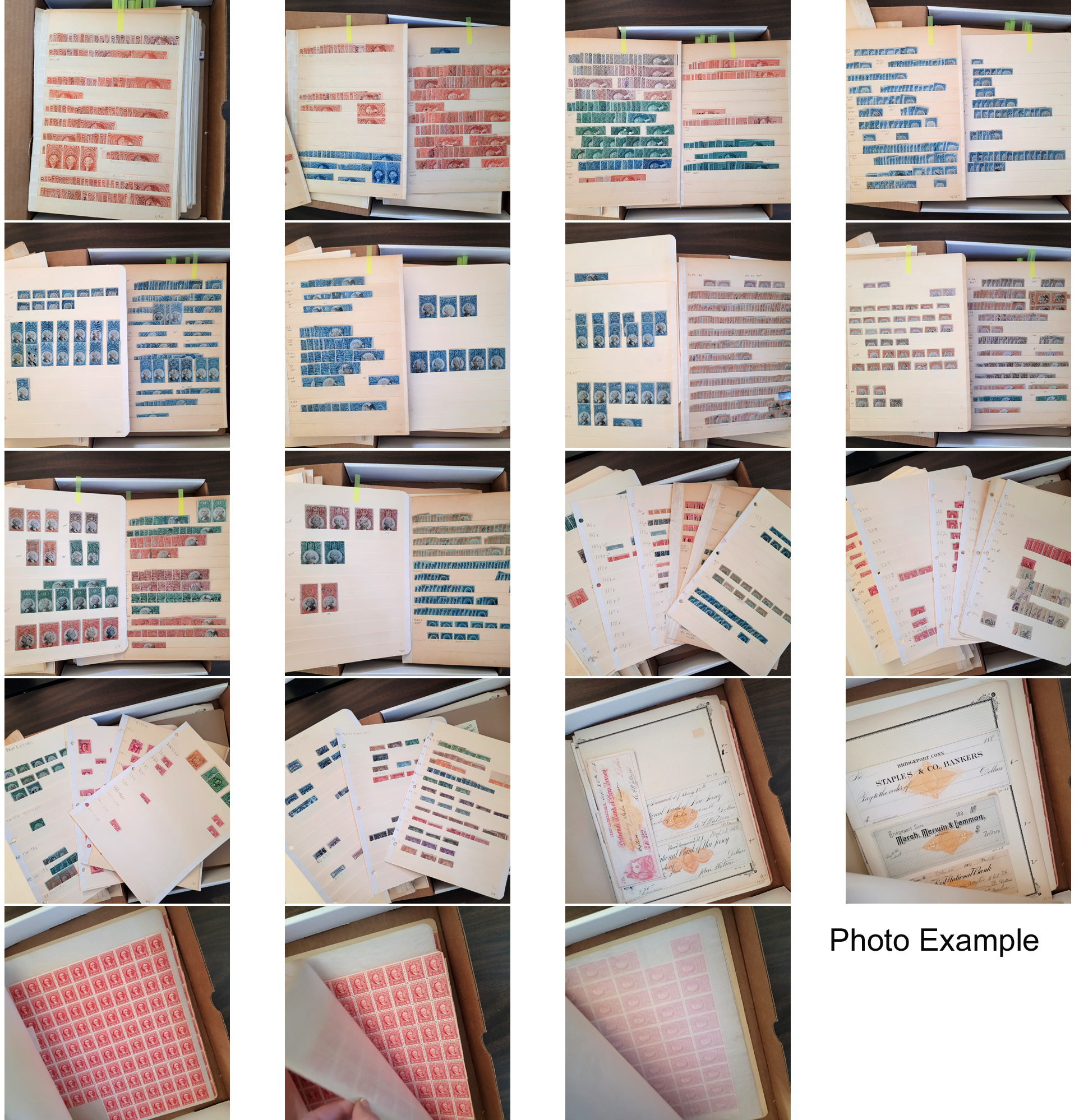 261 imageEXTENSIVE REVENUE ACCUMULATION, includes several hundred mostly used, neatly sorted onto stock pages, most of the value here is in the First Three Issues but the majority of the value is in the 2nd and 3rd Issue, there are some Docs and Dated Reds along with Props and a few others, the overall condition is mixed and there are faults but also plenty of Very Fine stamps too, quantities range from 1-10 with some higher(but mostly lower catalog value items), a huge amount of total retail value here and plenty to breakout for mail sale or internets sales, well worth a good look and real easy to work with, there are also a few revenue mint sheets in the back of this lot.