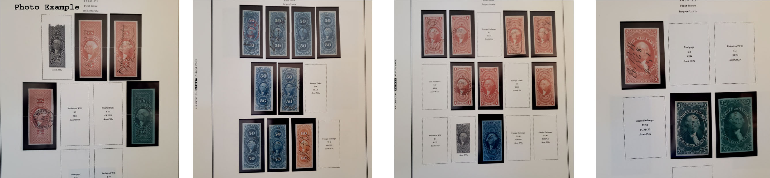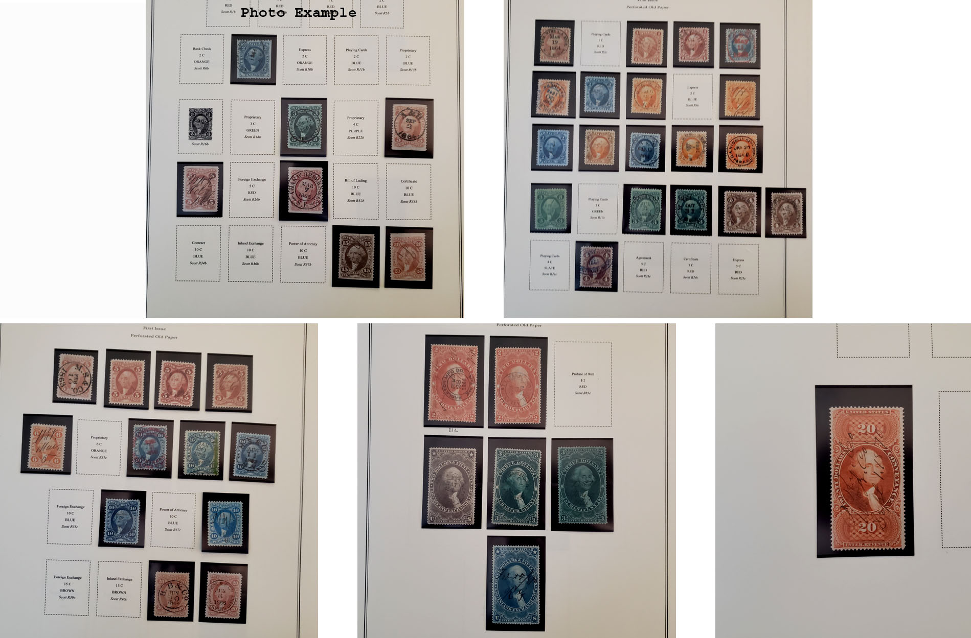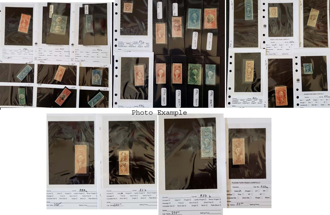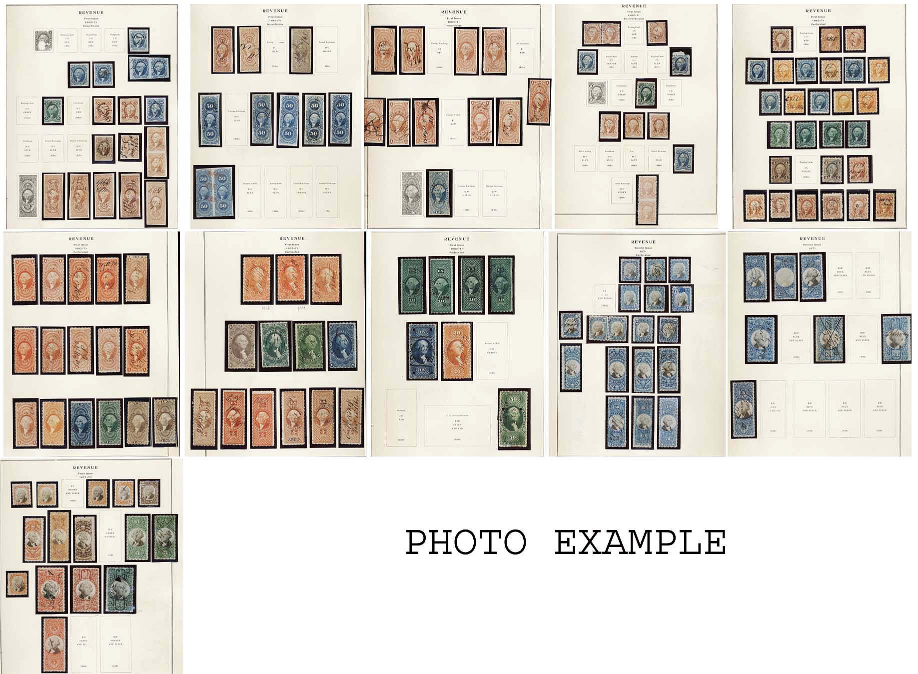 292 imageU.S. FIRST THREE ISSUES REVENUE COLLECTION, includes a couple hundred mostly different, mounted on album pages, most of the value here is in the First Issue but also a pretty strong Second and Third Issue section, the overall condition is mixed and faults are to be expected, some of the better stamps are: R19a, 41a, 41a(PR), 58a(PR), 61a, 75-76a, 86a, 90a, 98a, 1b, 3b, 13b, 58b, 65b, 17c, 73-74c, 77c, 79c, 80c(2), 90c, 97-98c, 101c, 103, 106, 108, 110, 113-14, 117, 119, 138, 141, 142; a very nice starter collection with plenty of "meat", well worth a good look.