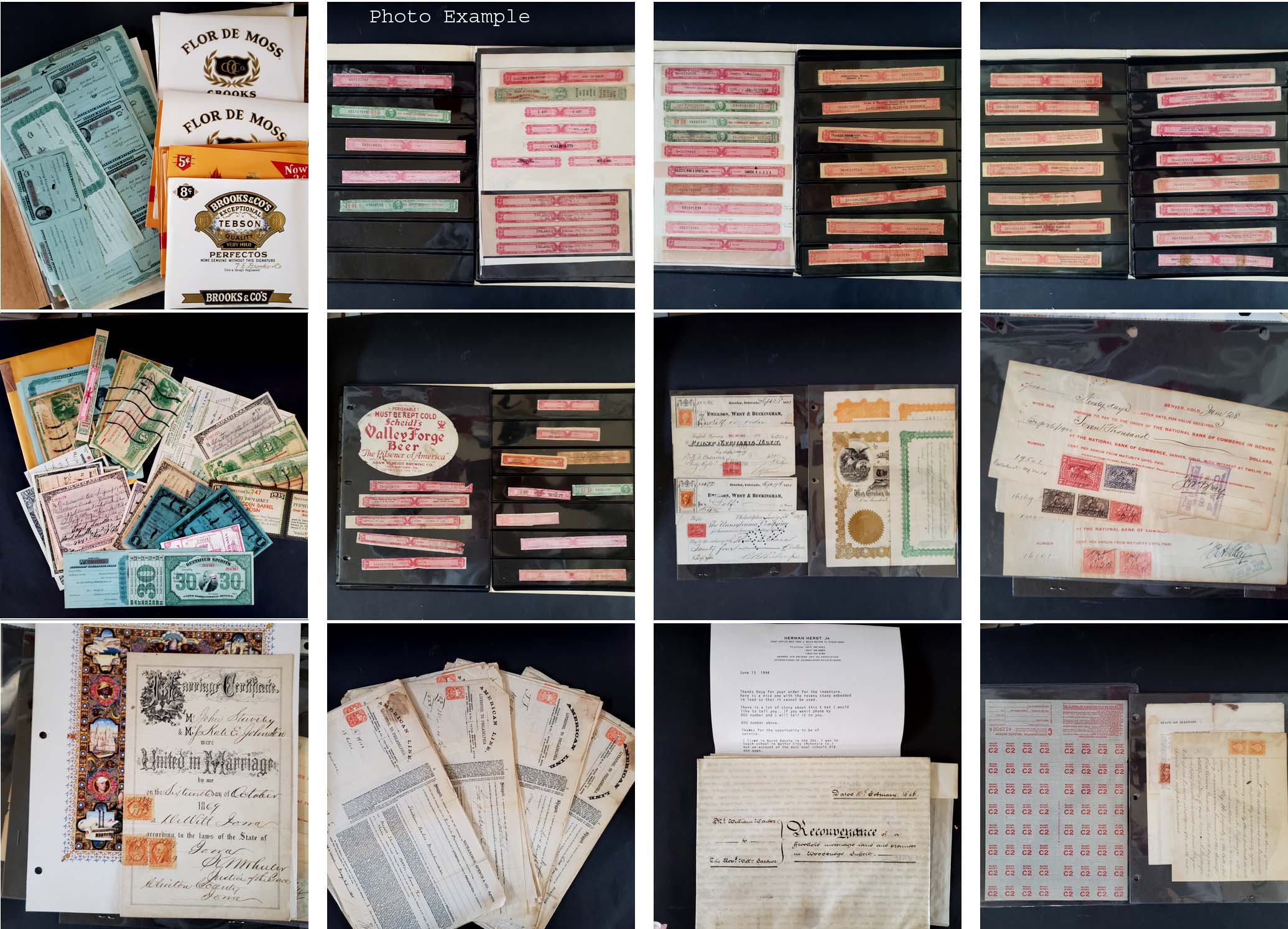 281 imageU.S. REVENUES AND RELATED ITEMS ACCUMULATION, includes a wide variety of material, there are various Revenues, Taxpaids, Special Tax, Documents, Checks, even a group of Cigar Box labels which are unused with duplication, there is also a Cotton tag and a Brass tag included, much of the value here is in the Special Tax stamps but also some interesting documents, the overall condition is mixed, all contained in a large white box, a fun lot to poke through.