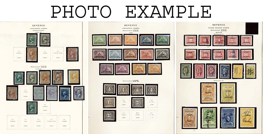 307 imagePROPRIETARY AND FUTURE DELIVERY COLLECTION, includes a few dozen mint and used, hinged on album pages, most of the value here is in the Second Issue Proprietary, usual mixed condition, there are some items here with values in the $100 range and there is also a RB18c with a faulty corner, take a look.