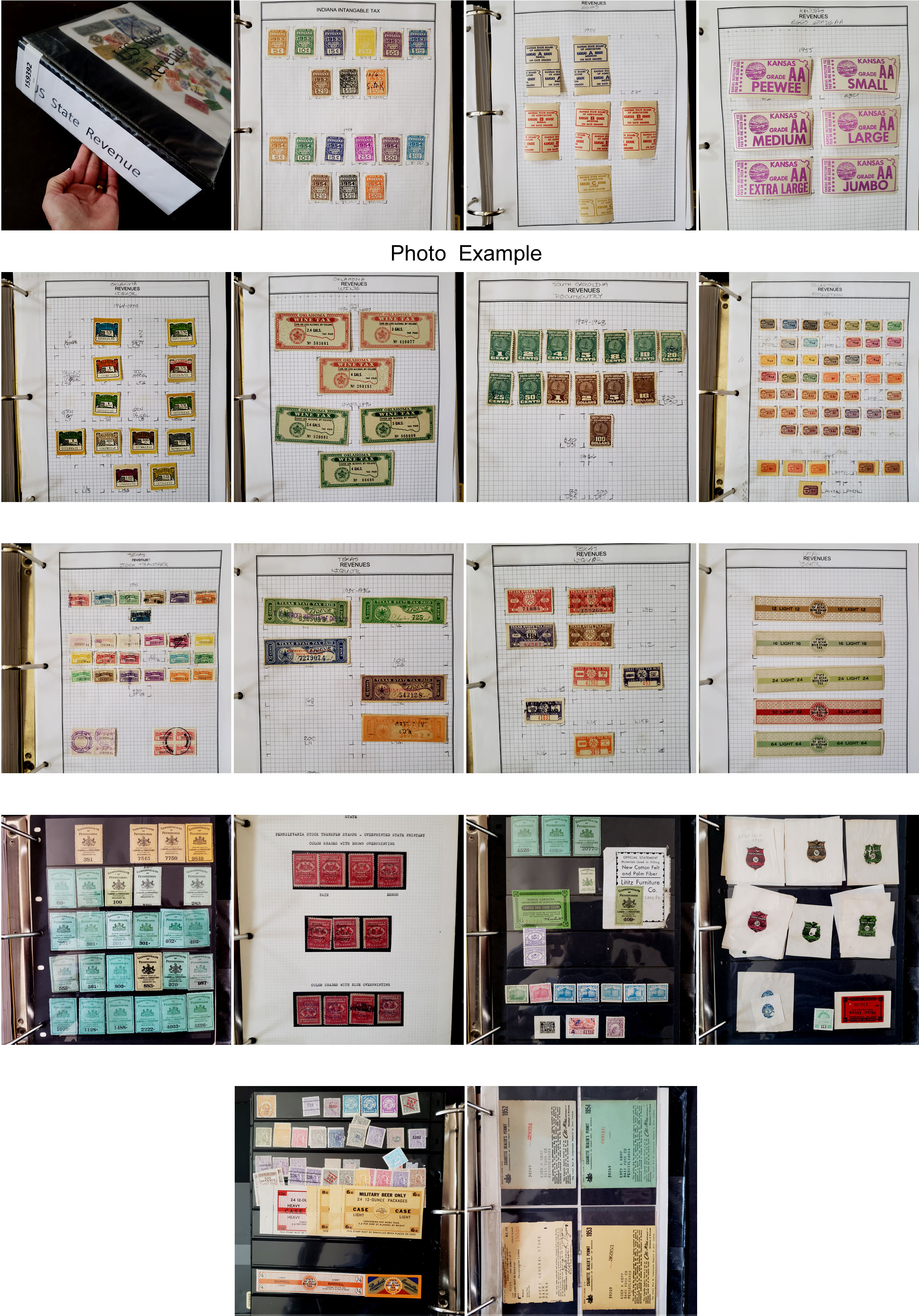 330 imageU.S. STATE REVENUE COLLECTION, includes several hundred mixed mint and used, virtually all different hinged on album pages in a three ring binder but there are several hundred various other items on loose album pages and stock pages located at the back of the album, there is some duplication in this group, the overall condition is mixed and there are faults to be expected, we noticed several items with values in the $10-25 range and up to $75, a very nice starter collection with lots of stamps and some good value.