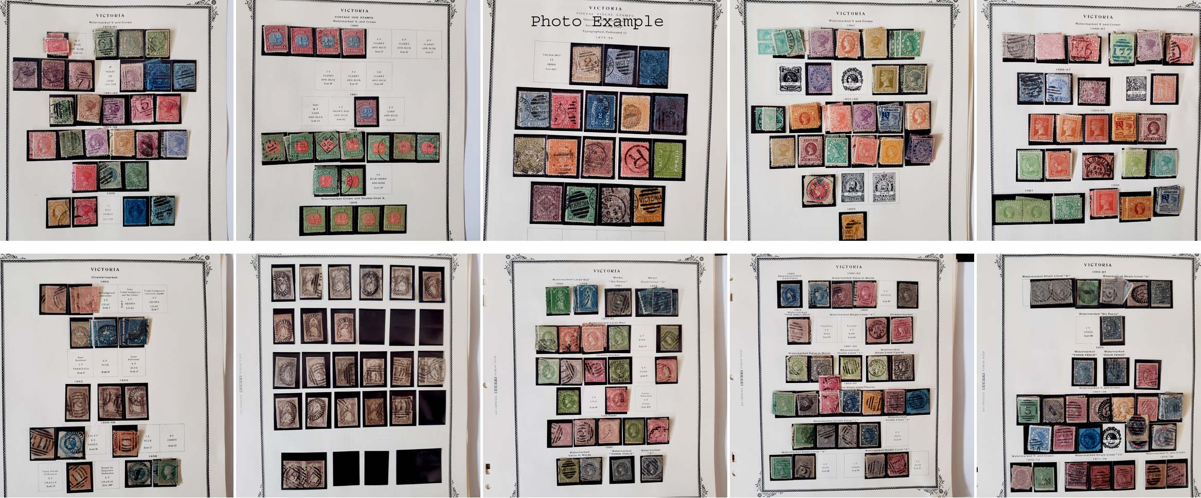 372 imageEXTENSIVE VICTORIA COLLECTION, includes several hundred mixed mint and used, mounted on a few dozen Scott album pages, the collection covers most of the country including B.O.B. and some Revenues, the key to this collection is the number of specialty items which include shade varieties, perf varieties and a significant number of better cancels, there is duplication but also a huge number of different - again due to varieties, the overall condition is mixed and there are faults to be expected, there are many sound and Very Fine stamps here, values run up to about $200 with a few higher, we have included a number of scans but viewing this collection will be a huge advantage to the serious specialist and bidder in this area, most of the issues were figured on the lowest shade or perf variety so the actual catalog value should be much higher, a really wonderful collection and well worth a good look.