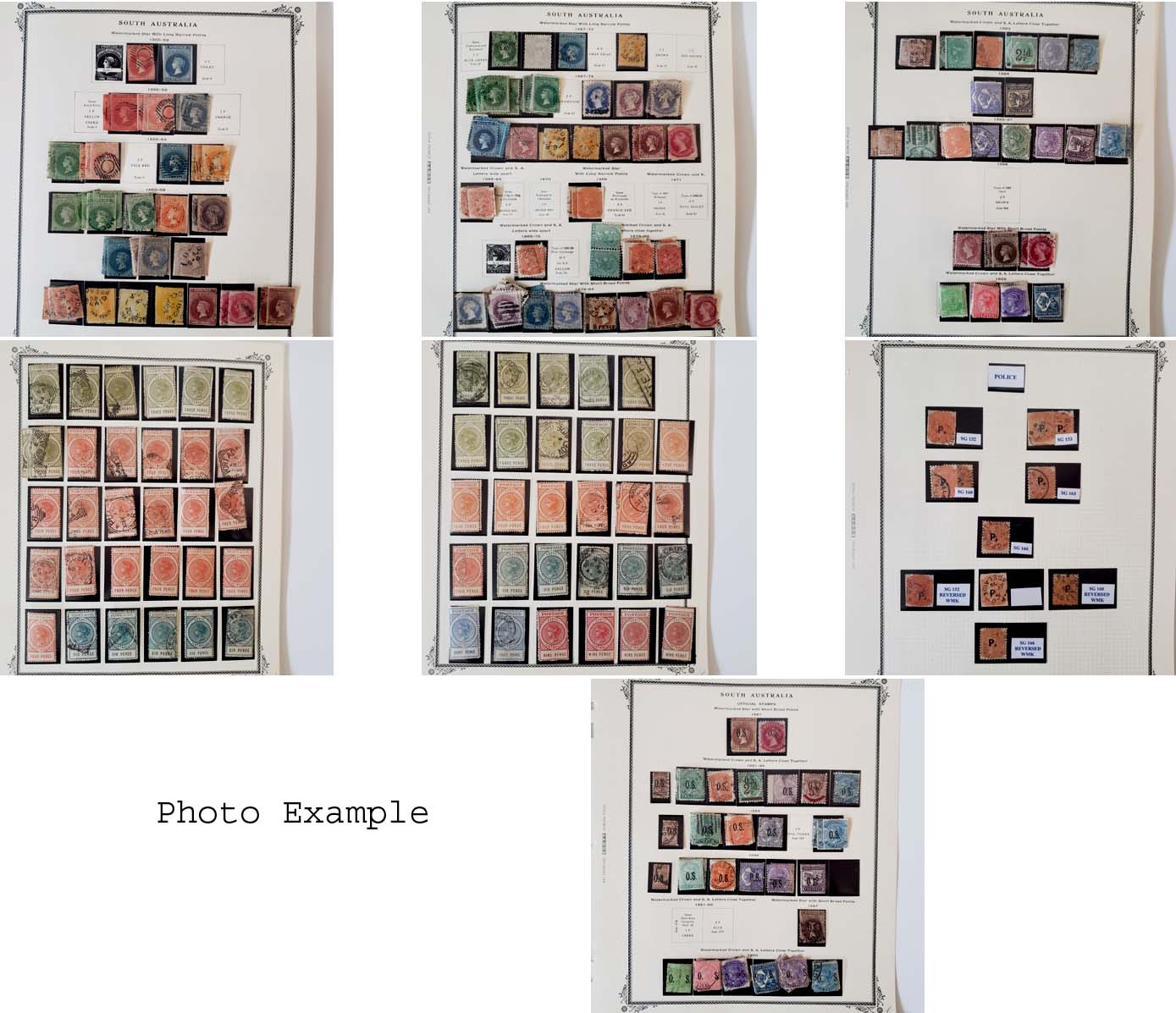 370 imageEXTENSIVE SOUTH AUSTRALIA COLLECTION, includes several hundred mixed mint and used, mounted on a few dozen Scott album pages, the collection covers most of the country including B.O.B. and some Revenues, the key to this collection is the number of specialty items which include shade varieties, perf varieties and a significant number of better cancels, there is duplication but also a huge number of different - again due to varieties, the overall condition is mixed and there are faults to be expected, there are many sound and Very Fine stamps here, values run up to about $200 with a few higher, we have included a number of scans but viewing this collection will be a huge advantage to the serious specialist and bidder in this area, most of the issues were figured on the lowest shade or perf variety so the actual catalog value should be much higher, a really wonderful collection and well worth a good look.