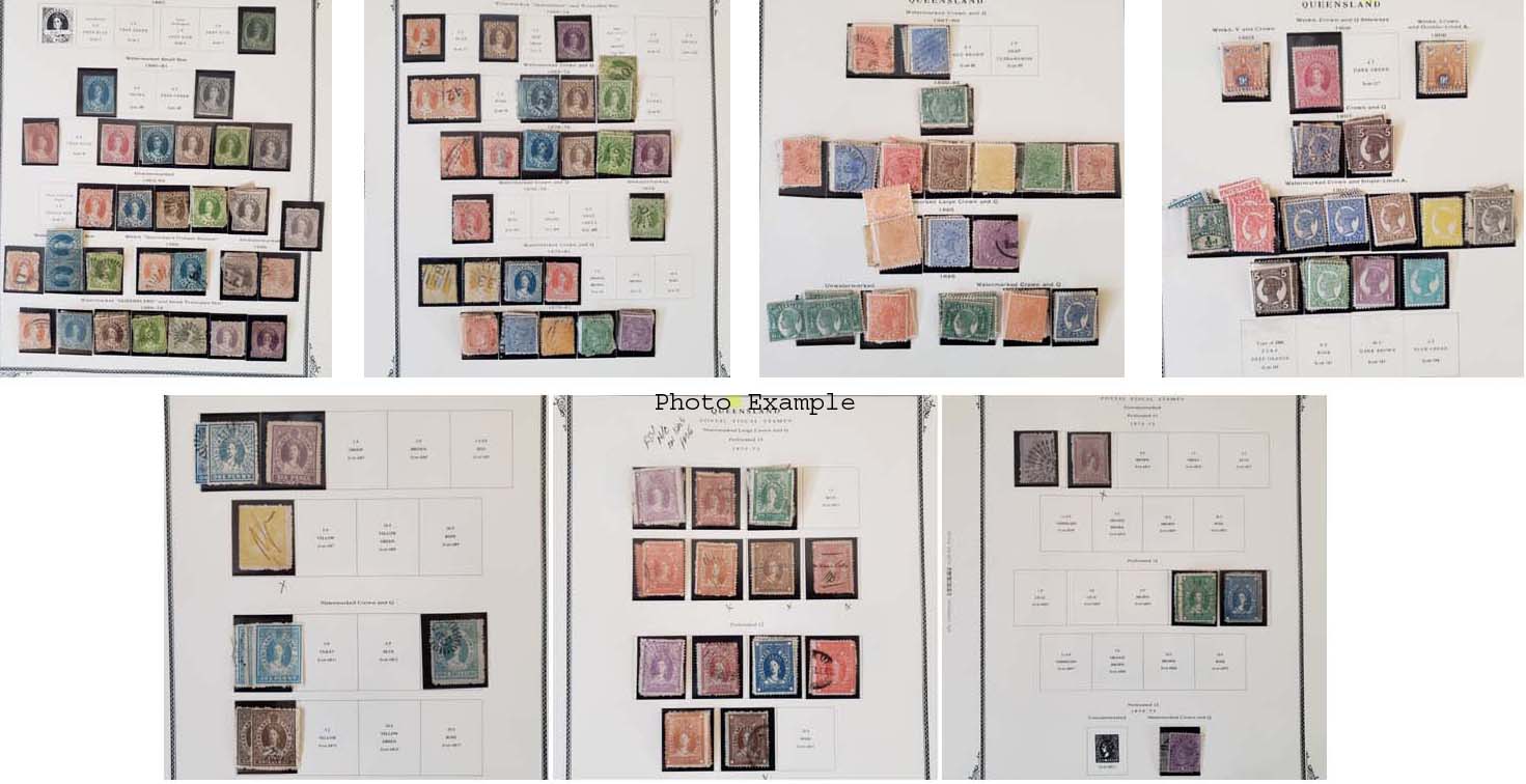 369 imageEXTENSIVE QUEENSLAND COLLECTION, includes a few hundred mixed mint and used, mounted on a couple dozen Scott album pages, the collection covers most of the country including B.O.B. and some Revenues, the key to this collection is the number of specialty items which include shade varieties, perf varieties and a significant number of better cancels, there is duplication but also a huge number of different - again due to varieties, the overall condition is mixed and there are faults to be expected, there are many sound and Very Fine stamps here, values run up to about $300 with a few higher, we have included a number of scans but viewing this collection will be a huge advantage to the serious specialist and bidder in this area, most of the issues were figured on the lowest shade or perf variety so the actual catalog value should be much higher, a really wonderful collection and well worth a good look.