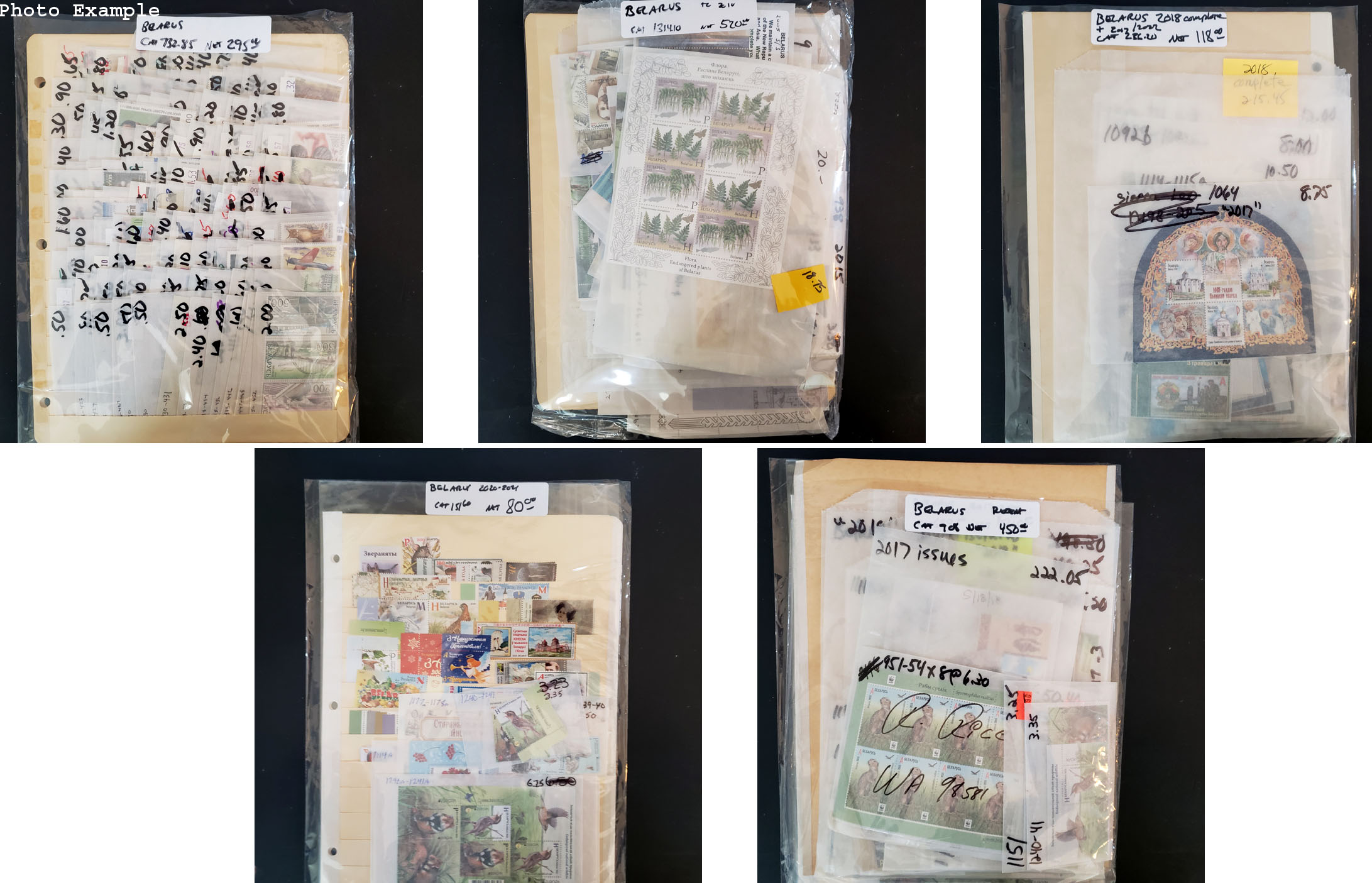 379 imageBELARUS MINT NEW ISSUES , includes several dozen mint singles, sets, booklets and a large number of S/S's, mostly contained in glassines where each is identified by Scott number and the current catalog value, runs to about 2022, virtually all different, this group is as received from the new issue dealers, nice clean lot .