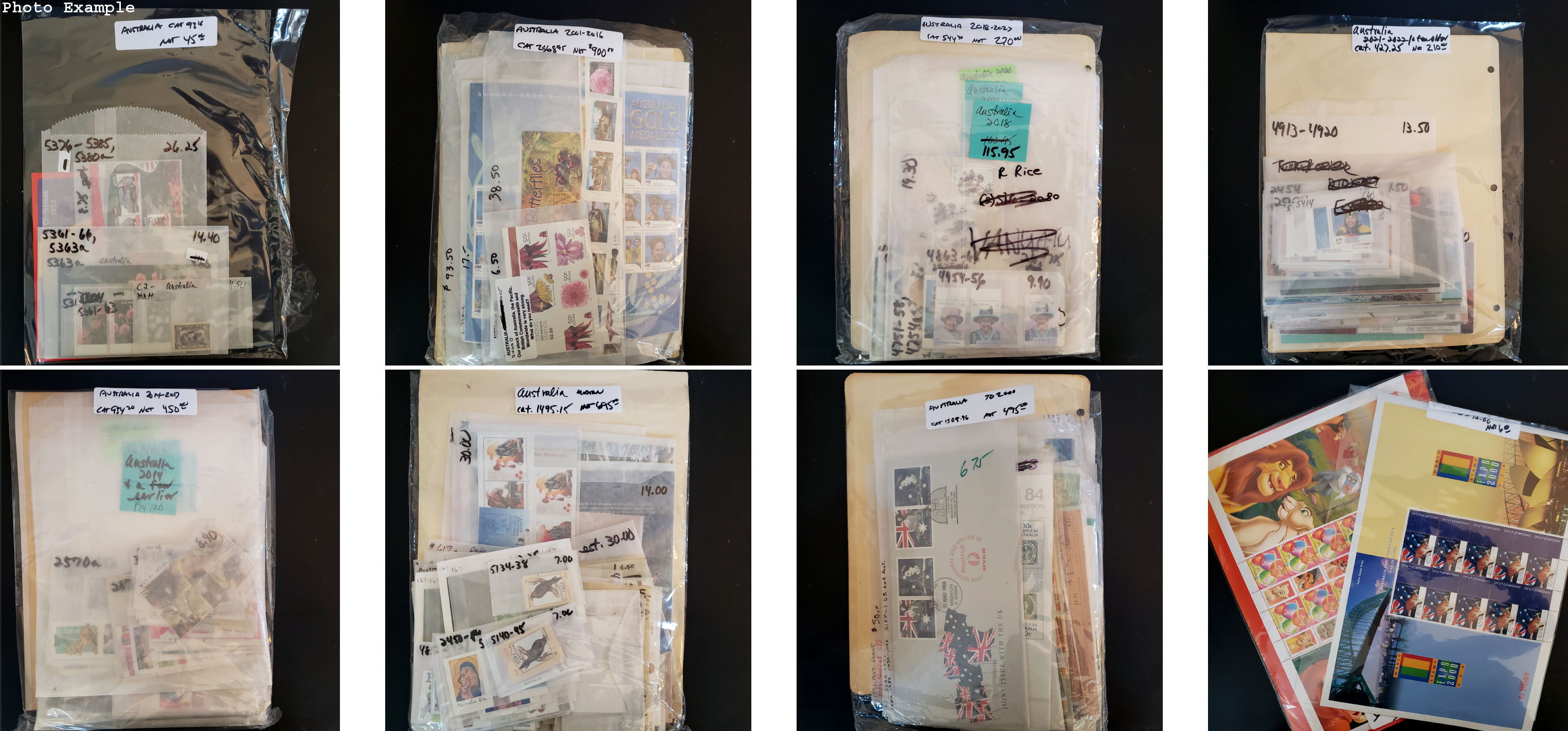 364 imageAUSTRALIA ACCUMULATION, includes a few hundred various mint singles and sets, mostly housed in small glassines in a small box, good variety but there is some duplication, much of the material appears NH, generally values in the $3-20 range with some higher, a nice lot to sort through.