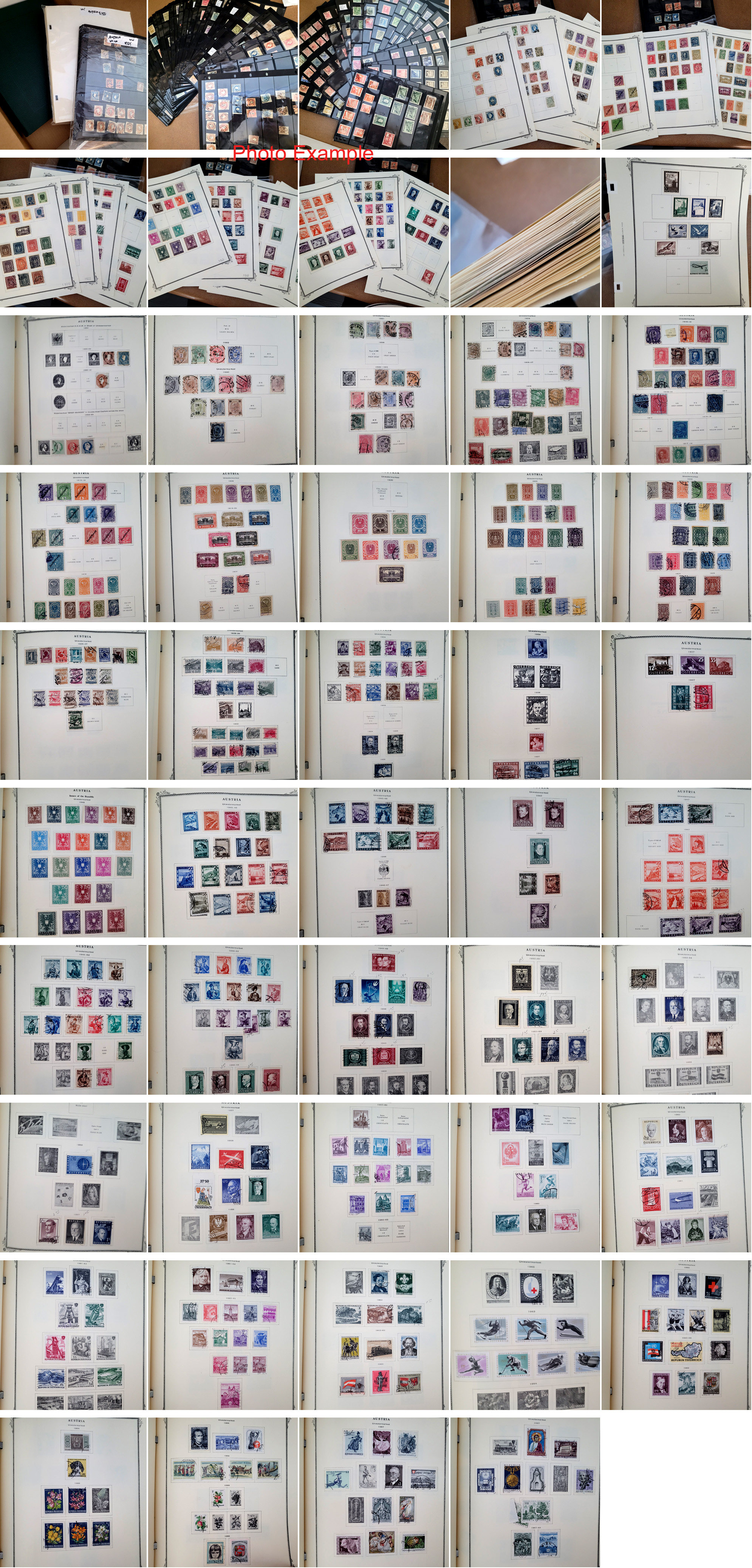 377 imageAUSTRIA ACCUMULATION, includes several thousand mixed mint and used, there are two collections, one in a Scott Specialty album, one on a group of album pages and then there is a group of duplicates on a couple dozen black stock pages, so there is duplication, usual mixed condition, values up to about $25 with some higher, plenty of stamps to look through with this one.