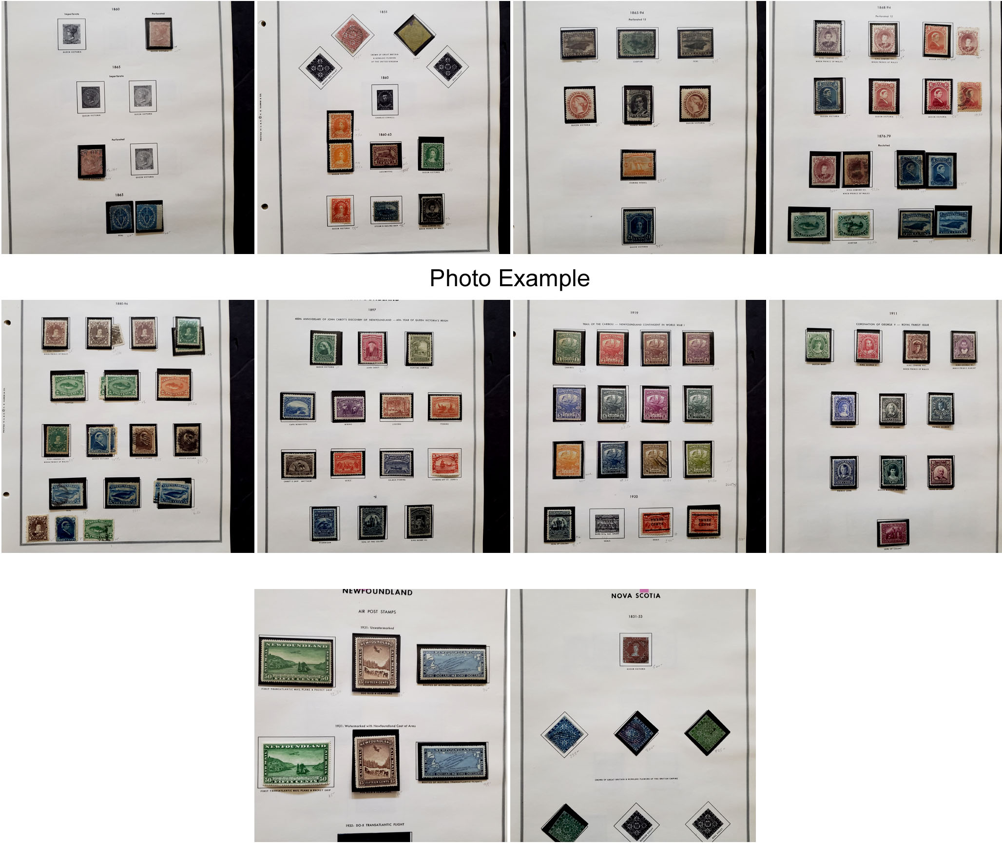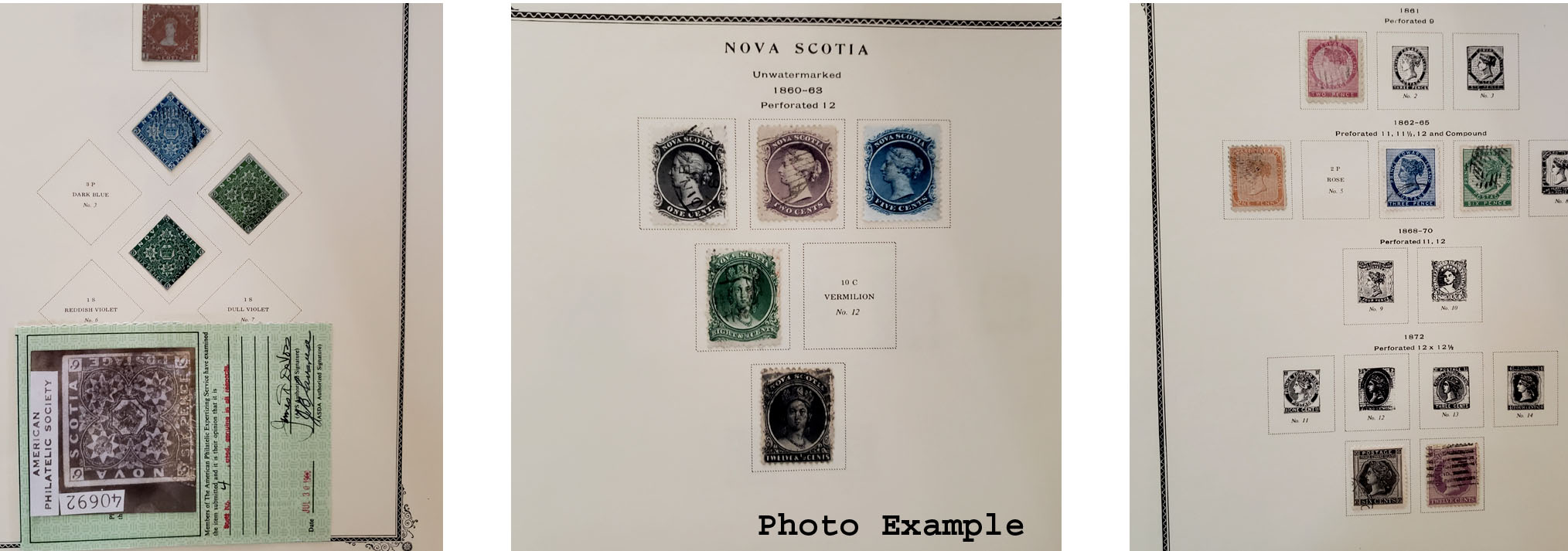 396 imageCLASSIC NOVA SCOTIA USED COLLECTION, includes 15 different used singles, hinged on two Scott album pages, this includes six Prince Edward Islands stamps, the overall condition is very clean with only some minor faults scattered, generally with light cancels and many with great color, the lot includes Newfoundland 1, 2, 4(APS cert.), 5, P.E.I. 1, a very nice collection in much better than the norm condition, a great breakdown retail lot.
