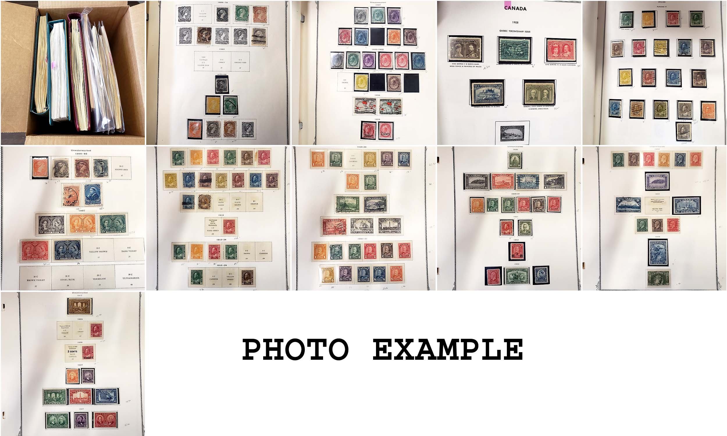 400 imageCANADA & PROVINCES COLLECTIONS GROUP, includes 10 various units of collections contained in a medium box, overall mixed mint and used with several running into the 1970-80's period, there is some B.O.B. and also some Provinces issues either alone or with some only groups, the overall condition here is mixed as would be the norm, there are three albums and the rest are album page groups, there should be a good amount of total face value which is not figured in the total catalog value listed, there are three groups with values about $2,500 each and two others over $1,000 each, a good lot to break out some value or to make country collections for retail or internet.