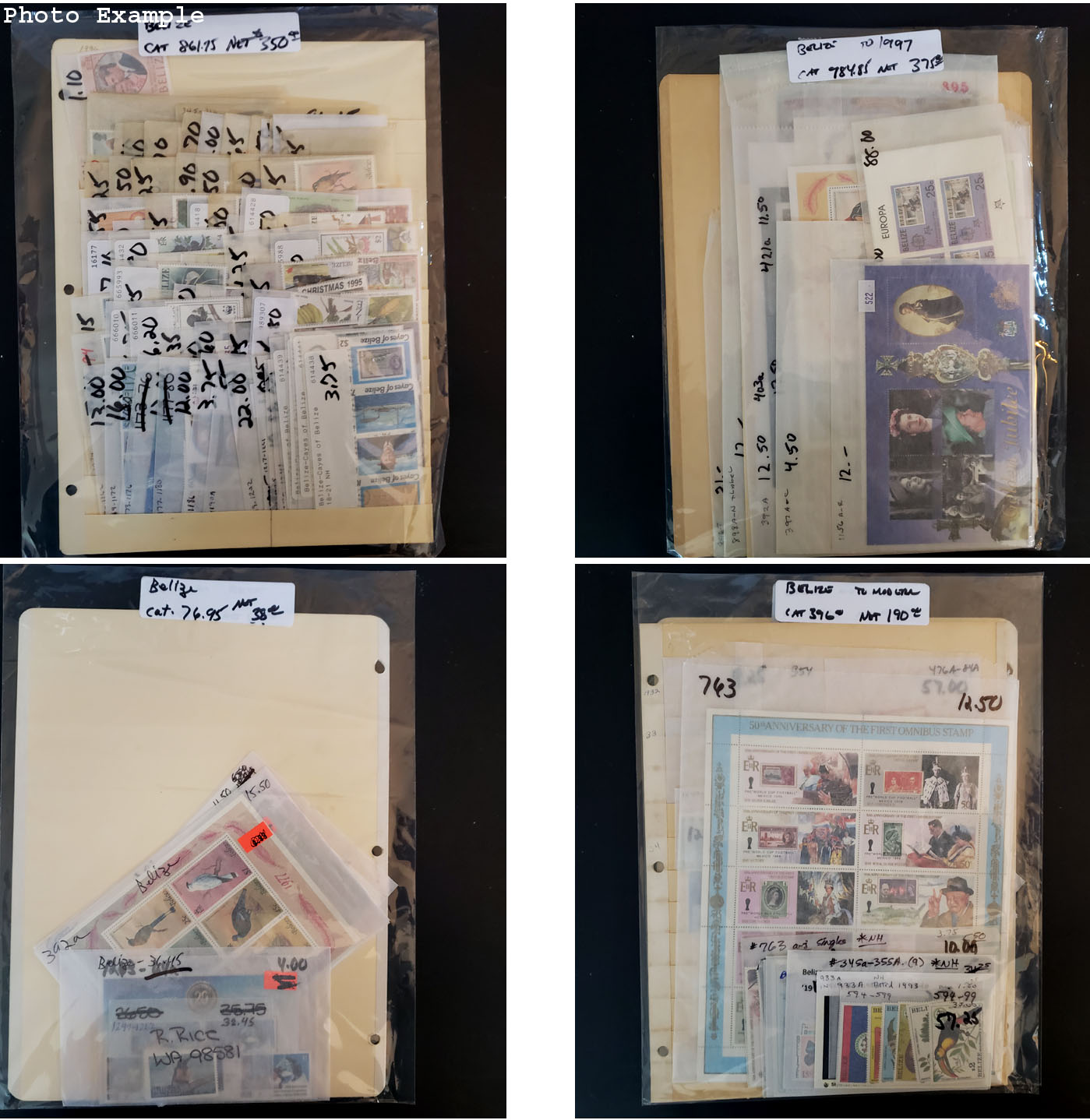 385 imageBELIZE MINT NEW ISSUES , includes several dozen mint singles, sets, booklets and a large number of S/S's, mostly contained in glassines where each is identified by Scott number and the current catalog value, runs from #325//1156, virtually all different, this group is as received from the new issue dealers, nice clean lot .