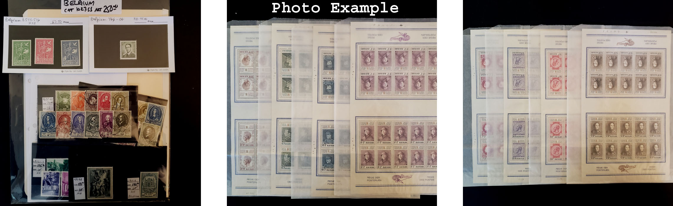 383 imageBELGIUM ACCUMULATION, includes several hundred mixed mint and used singles and sets and some S/S's, contained on stock pages and black stock pages in a three ring binder, there is duplication here, fairly strong early material and a very nice Semi-Postal section along with some other B.O.B. material, the overall condition here is mixed and faults are to be expected but there are plenty of clean and some NH material, there will be many thousands of dollars in catalog value with this one and we saw values up to about $100 with some higher and a huge amount of material in the $25-100 range, also we noticed a fair amount of specialized issues included, lots of stamps, lots of value and a whole lots of fun with this one.