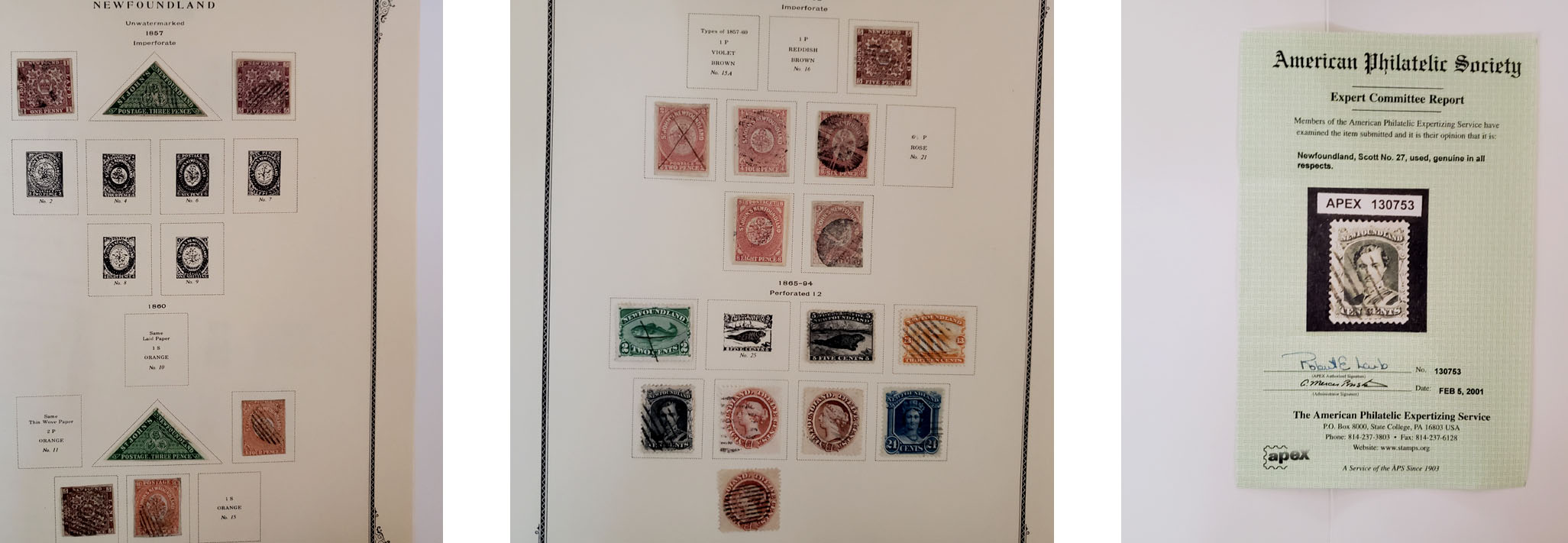 395 imageCLASSIC NEW FOUNDLAND USED COLLECTION, includes 21 different used singles, hinged on Scott album pages, the overall condition is very clean with only some minor faults scattered, generally with light cancels and many with great color, the lot includes 1, 3, 5, 11A, 12, 12A, 13, 17, 22-23, 26, 27(APS cert.), a very nice collection in much better than the norm condition, a great breakdown retail lot.