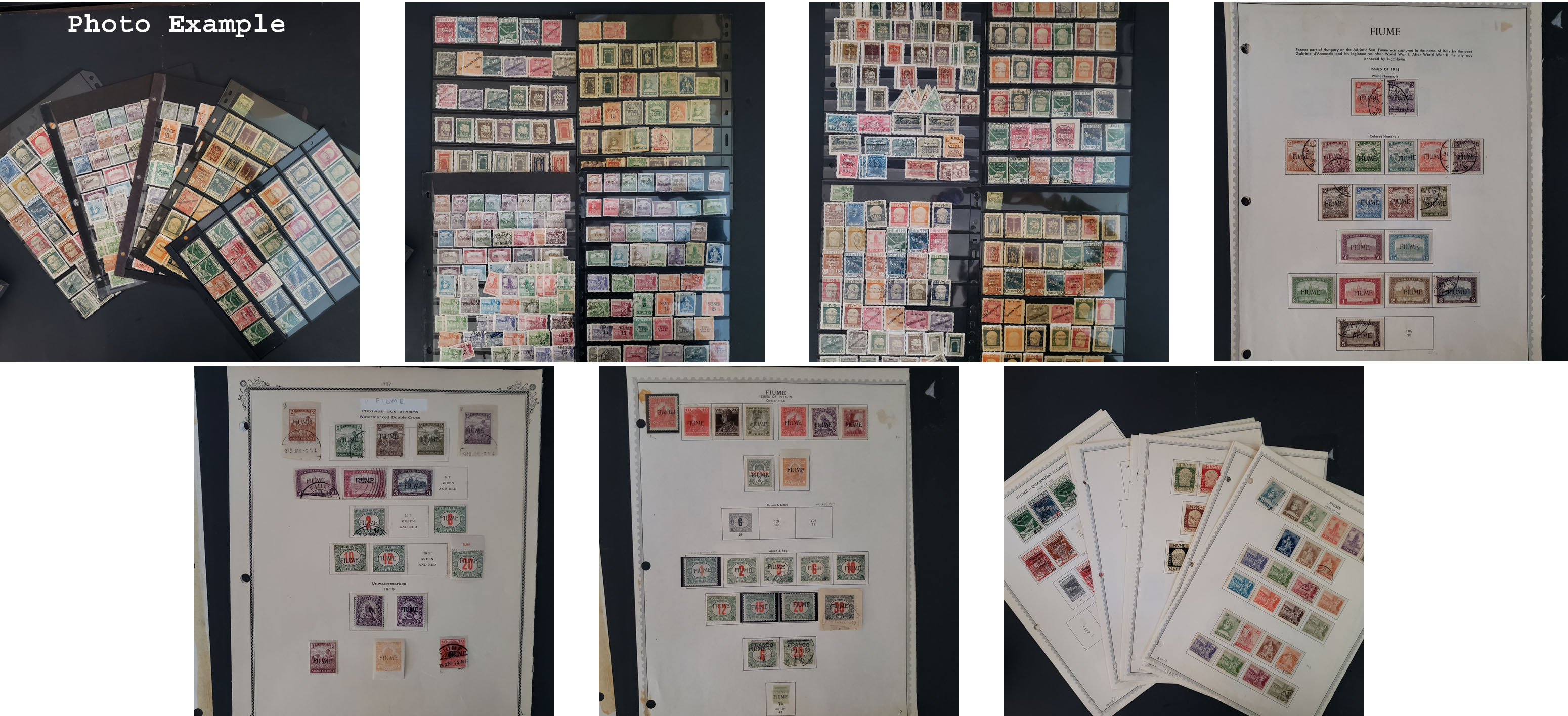 456 imageFIUME ACCUMULATION AND COLLECTION, includes a few hundred mint and used singles, hinged on album pages and on black stock pages, there is duplication throughout, condition is pretty clean with some scattered faults, there are several items with values in the $25-100 range included (if they are genuine), a huge showing of used items, also a good amount of B.O.B., this country is rarely offered especially with this number of stamps.