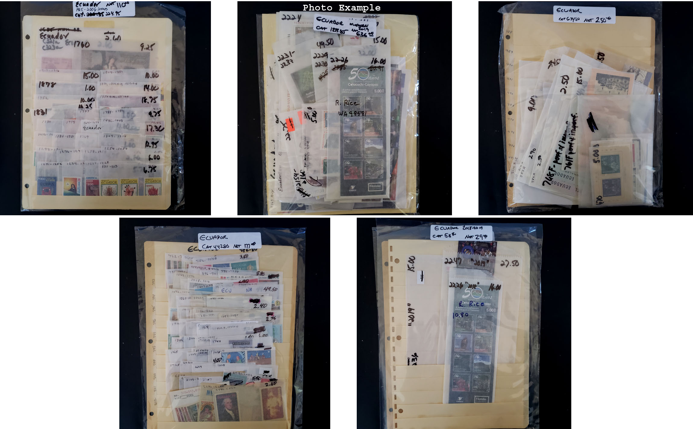 450 imageECUADOR NEW ISSUES , includes several dozen mint singles, sets, booklets and a large number of S/S's, mostly contained in glassines where each is identified by Scott number and the current catalog value, runs from #752//2247, virtually all different, this group is as received from the new issue dealers, nice clean lot.