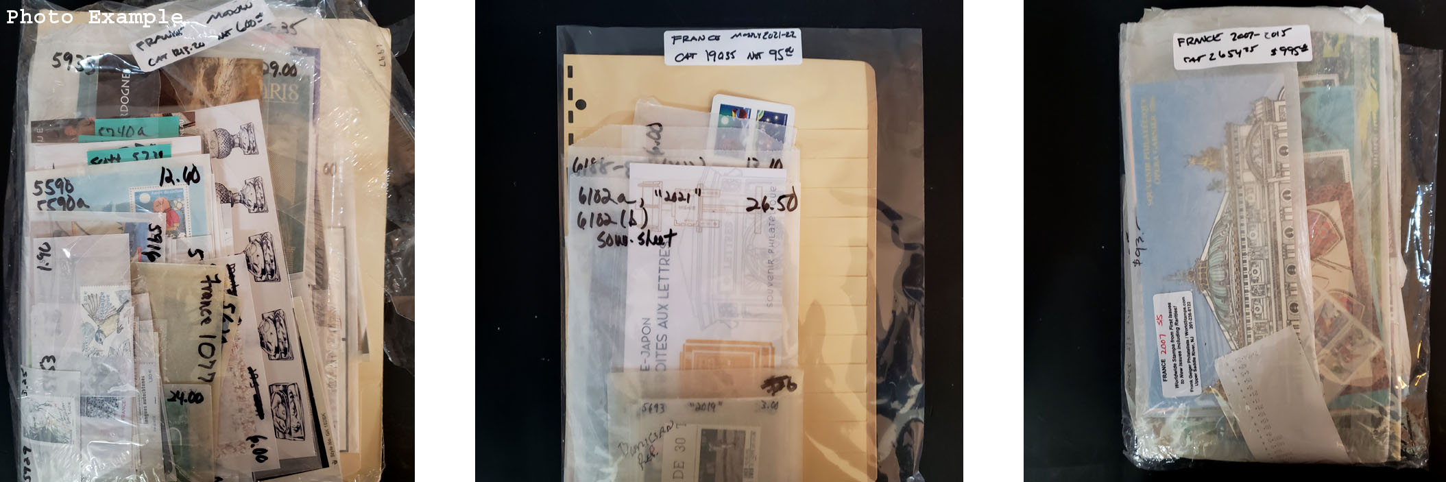 459 imageFRANCE ACCUMULATION, includes a few hundred various mint singles and sets, mostly housed in small glassines in a small box, good variety but there is some duplication, much of the material appears NH, generally values in the $3-20 range with some higher, a nice lot to sort through.