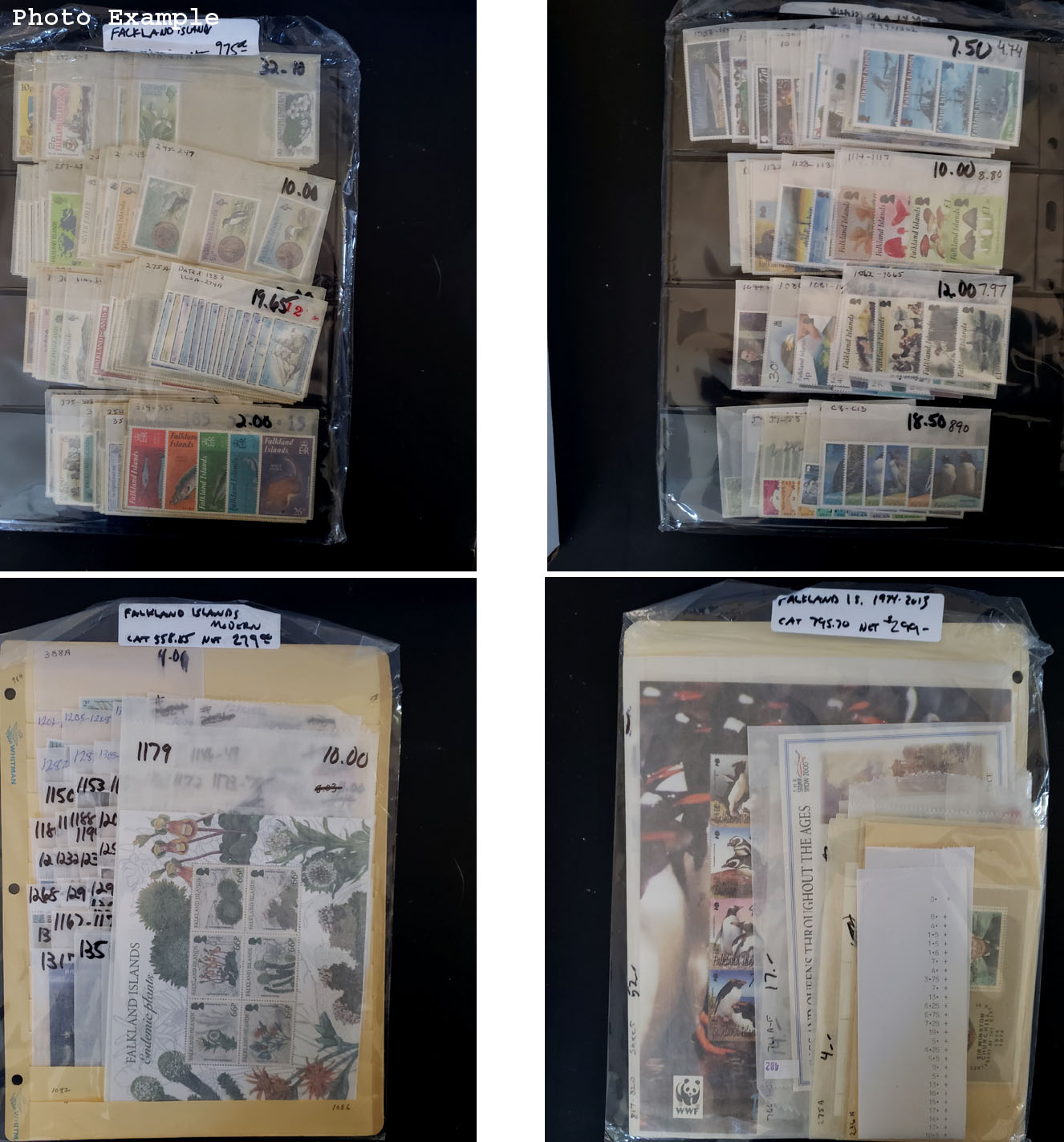 451 imageFALKLAND ISLANDS MINT NEW ISSUES , includes several dozen mint singles, sets, booklets and a large number of S/S's, mostly contained in glassines where each is identified by Scott number and the current catalog value, runs from #245//1338, virtually all different, this group is as received from the new issue dealers, nice clean lot.