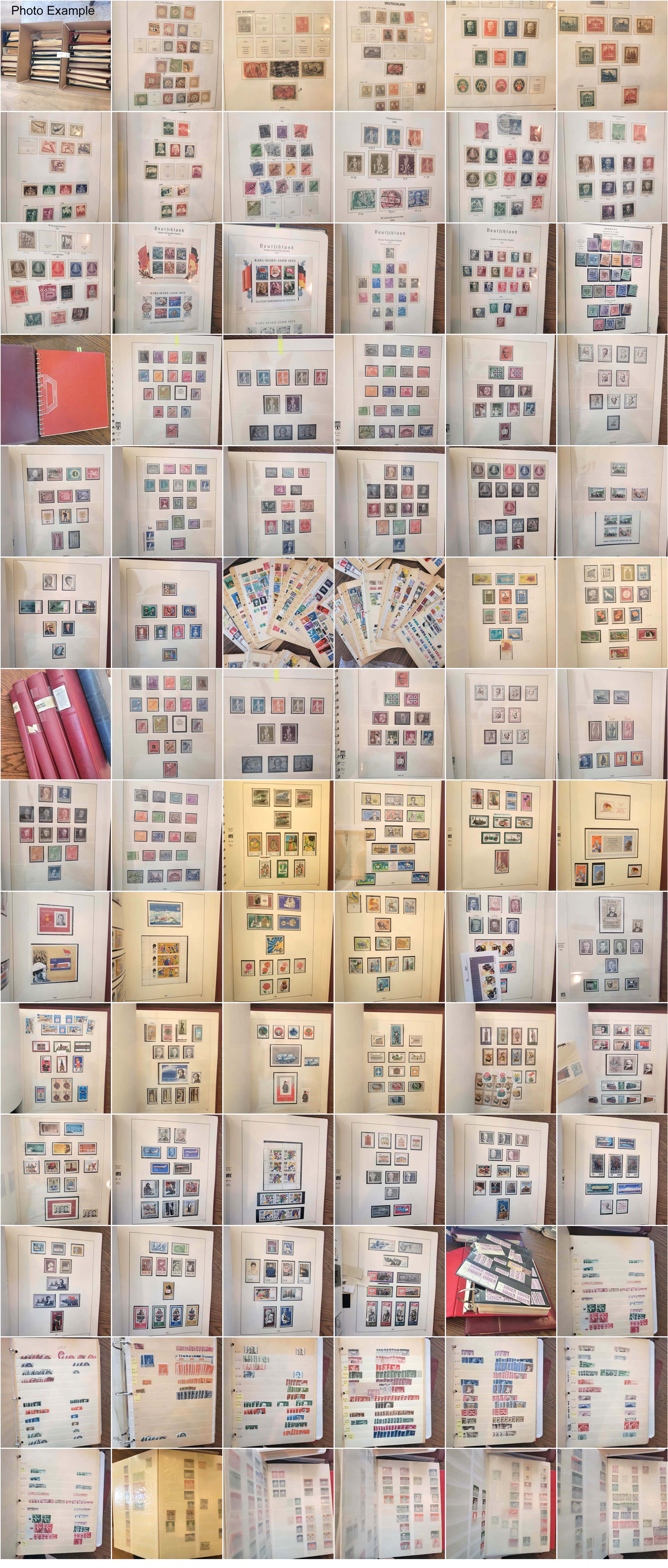 478 imageEXTENSIVE GERMANY COLLECTIONS ACCUMLATION, includes thousands of mint and used singles, multiples, sets and S/S's, contained in 25 various albums and a few stock books, 14 of the albums are hingeless types from various companies, packed into three large cartons, the lot includes seven albums of DDR, three of Berlin, five of mint Germany and four of used Germany, the rest of the albums and stockbooks are more of the general nature, values up to about $100 with some higher and there are hundreds of items with values in the $25-100 range, the overall condition is mixed and there are faults to be expected, there will be tens of thousands of dollars in catalog value here, a great lot to break down and sell into album lots.