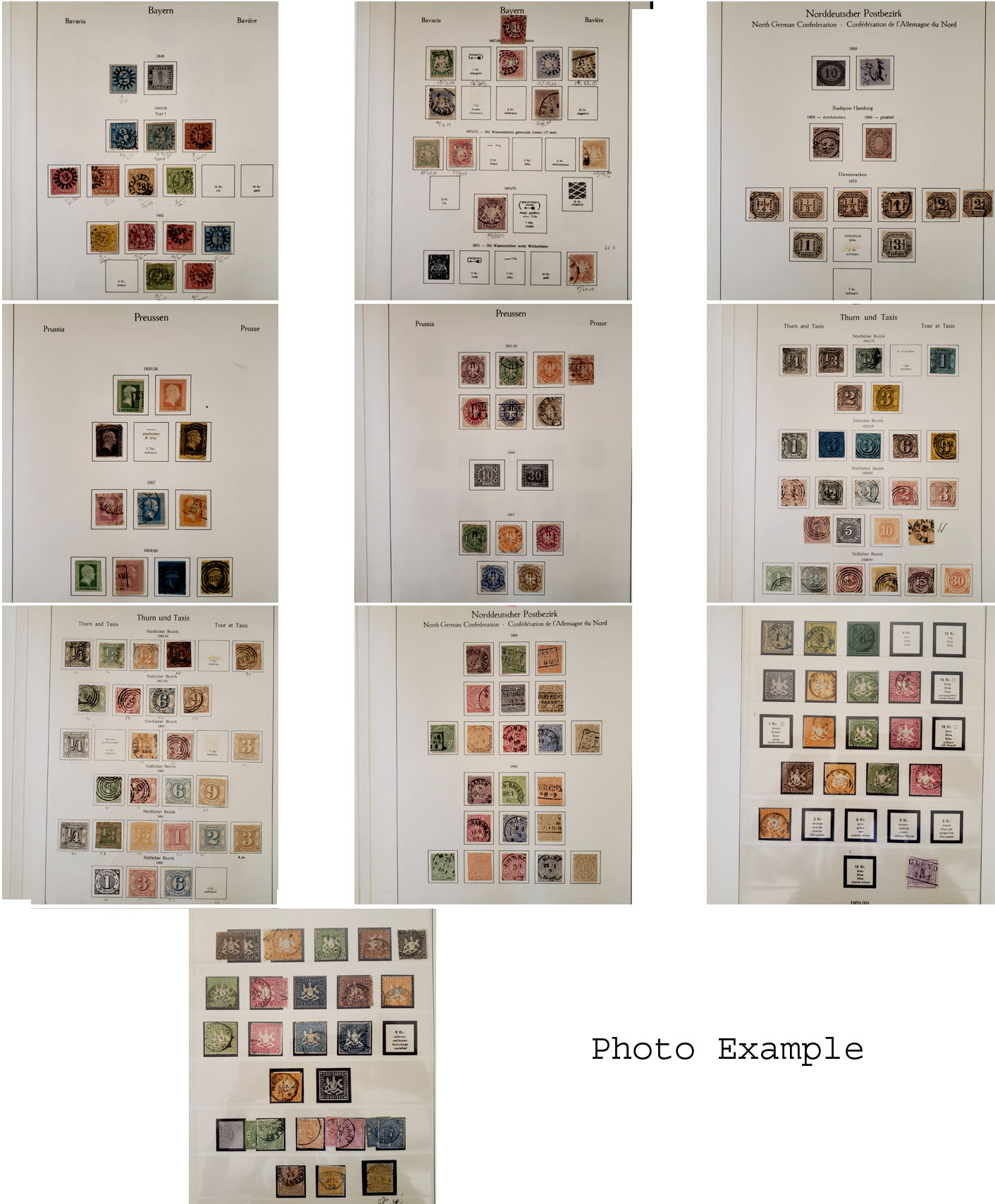 475 imageGERMANY STATES COLLECTION , includes a few hundred mostly different mixed mint and used on album pages, there are some scattered varieties, values up to about $50 with some higher, the lot includes strong Bavaria, North German Fed., Thurn & Taxis and Wurttemberg, the overall condition is mixed with some faults but there are many very nice stamps here, a really good starter collection with lots of stamps, half group is on KA-BE pages, the other half is on Lindner hingeless pages.