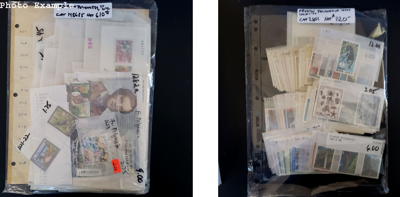470 imageFRENCH POLYNESIA MINT NEW ISSUES , includes several dozen mint singles, sets, booklets and a large number of S/S's, mostly contained in glassines where each is identified by Scott number and the current catalog value, runs to 2022, virtually all different, this group is as received from the new issue dealers, nice clean lot.